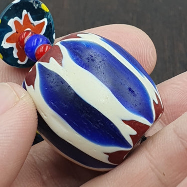 Antique white heart Venetian inspired African Blue Glass Chevron With Big Bead