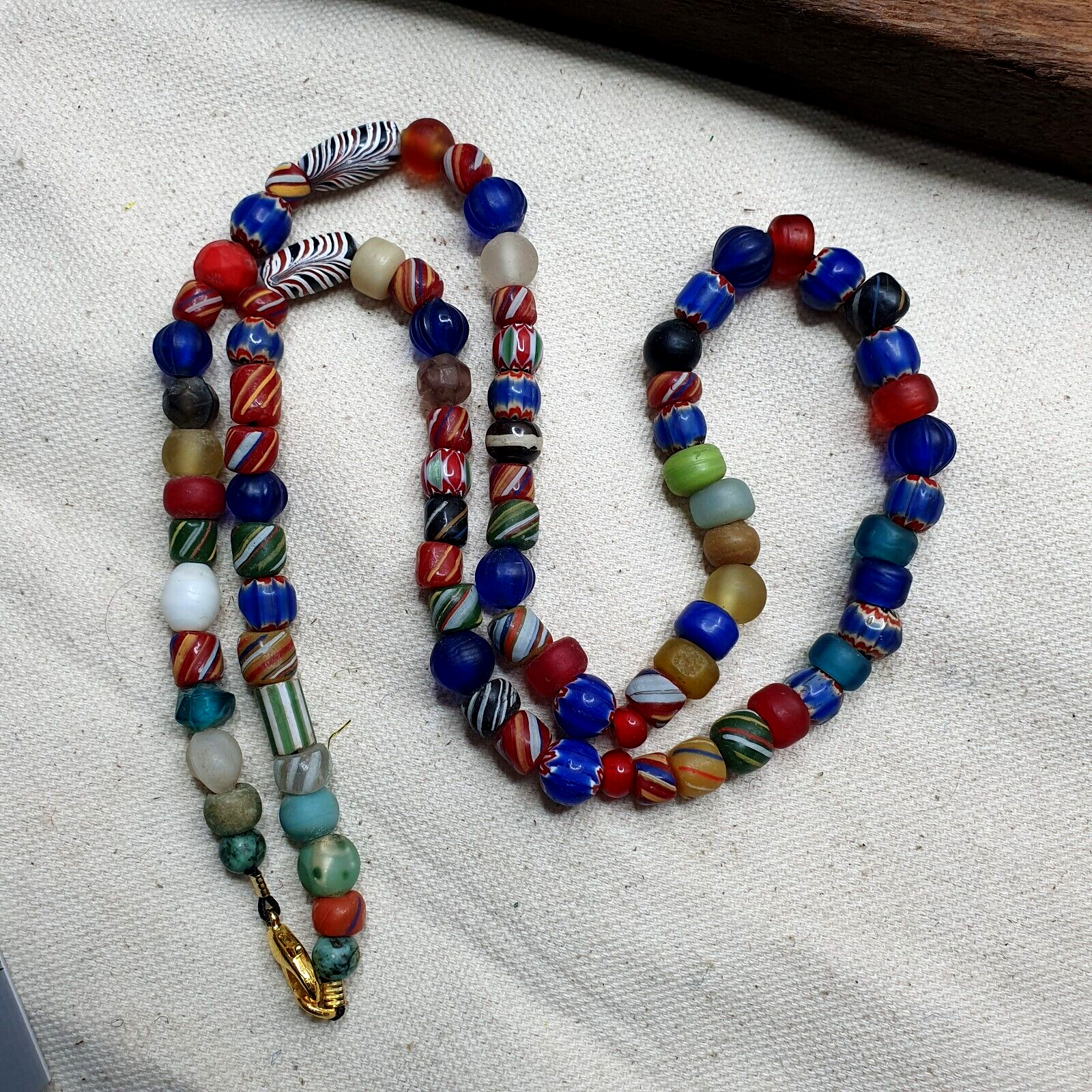 Vintage African and Venetian Style Beads Necklace #MX-5