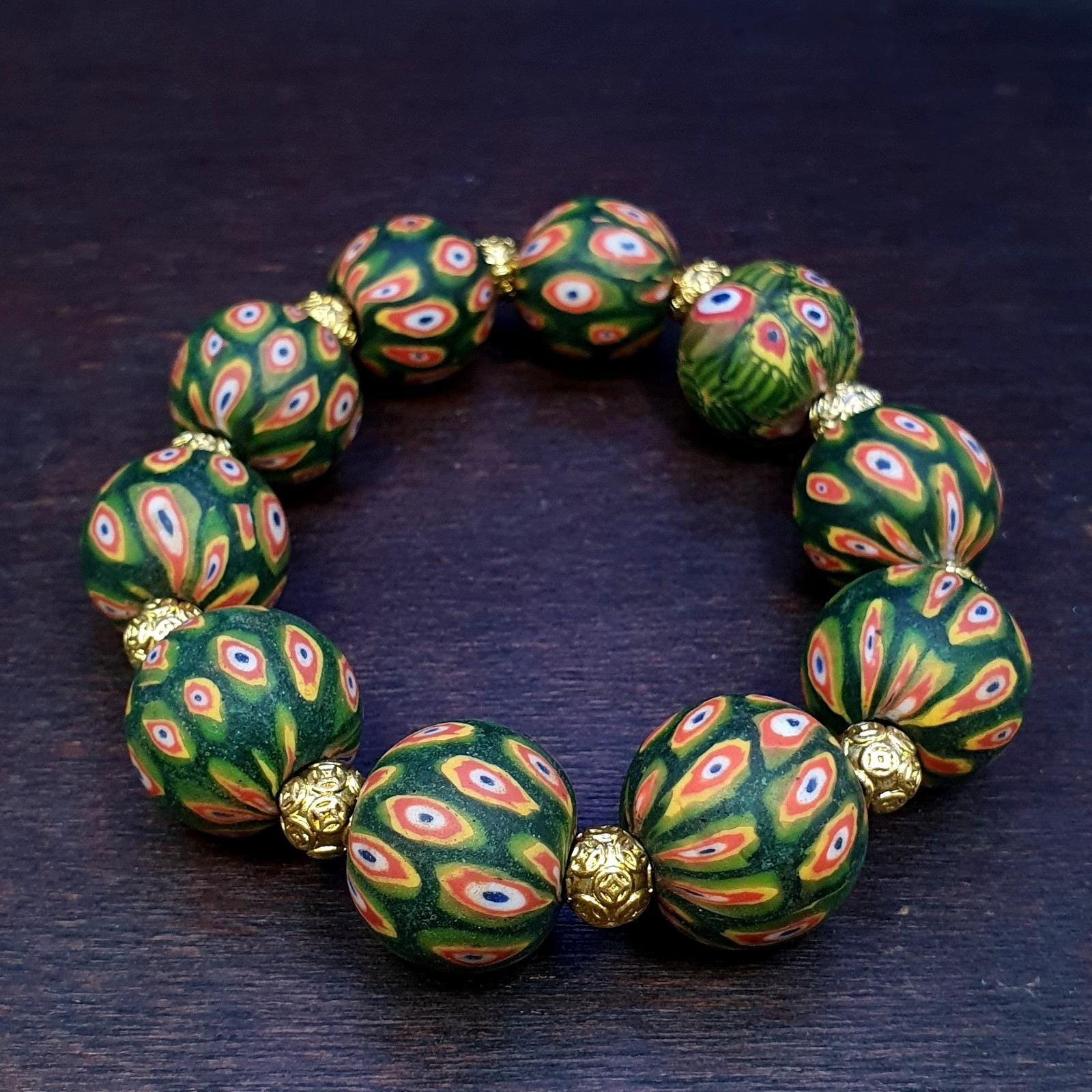 Vintage antique african green gabri style hundred eyes beads bracelet