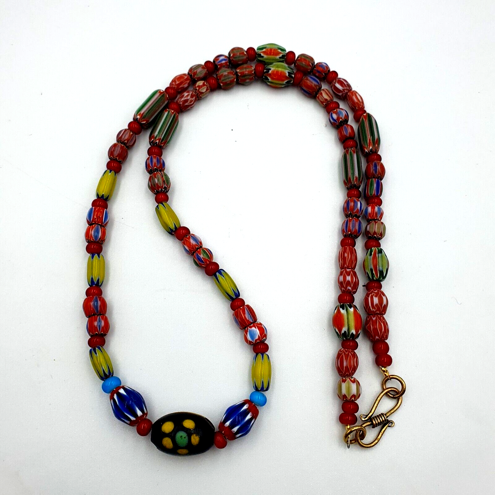 Vintage Chevron and White Heart Venetian Multilayers Glass Beads Necklace N-94