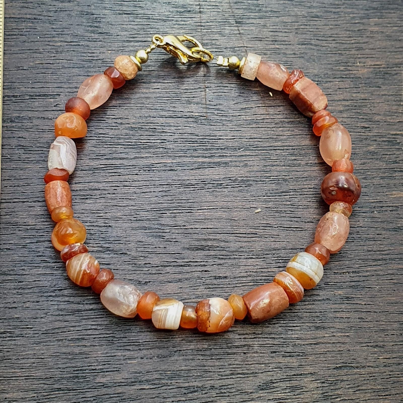 Ancient antique agate carnelian beads beaded bracelet #jn-br4