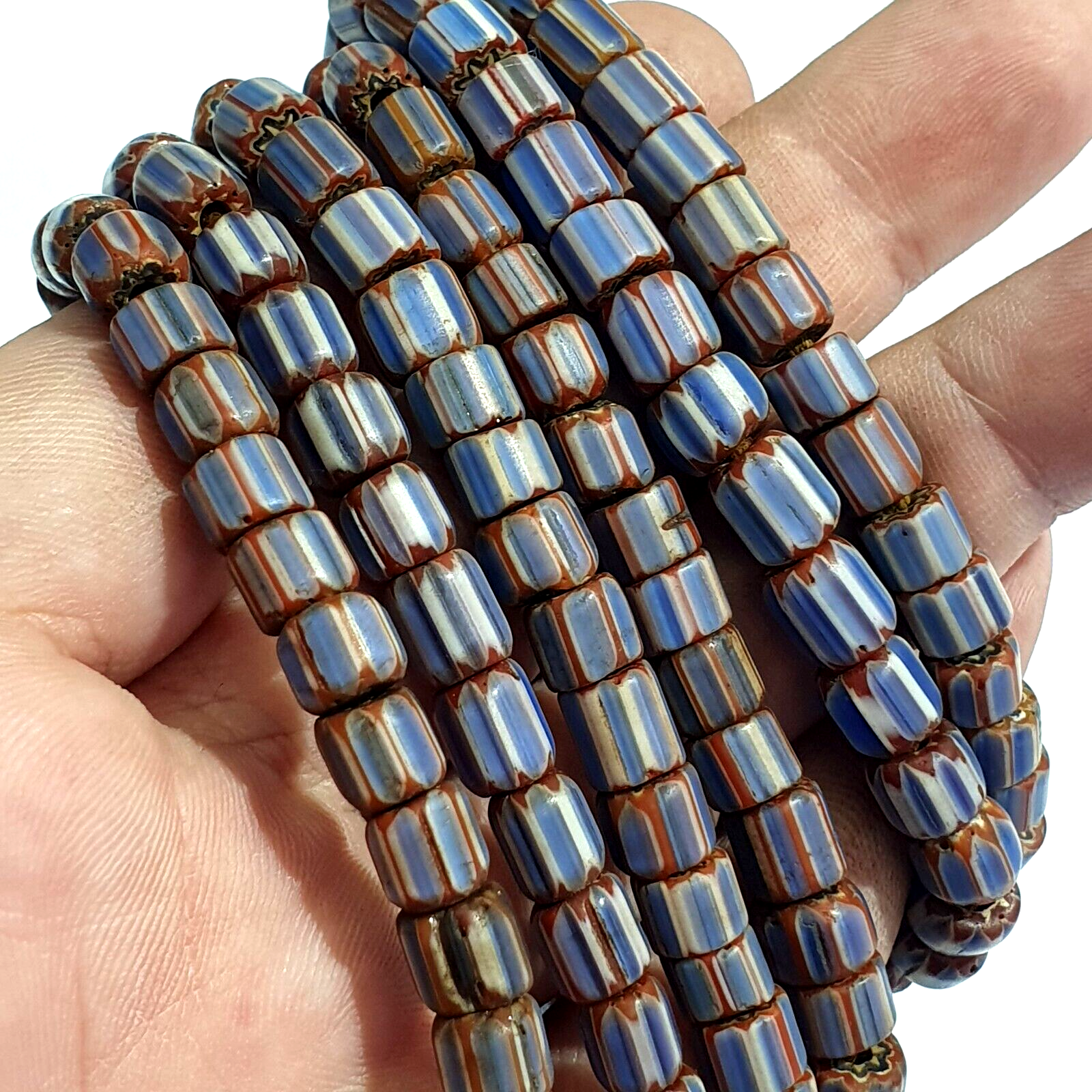 Other Names Chevron Beads SIX Layer Type of Object Drawn, multi-layered glass Color BLUE, RED, White  Approximate Age Late 20th century...
