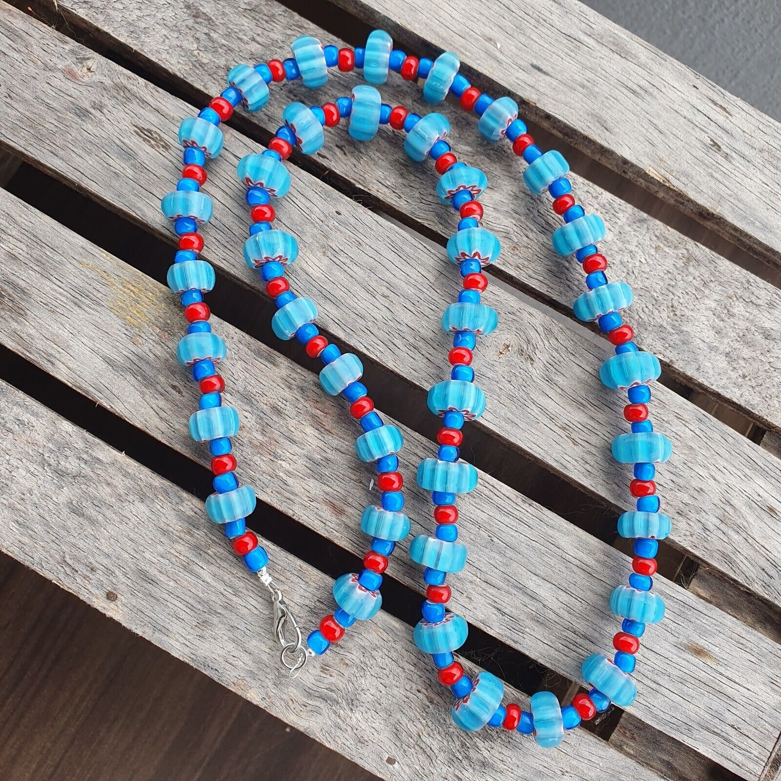Colorful Chevron and White Heart Venetian Beads Glass Beads Necklace NCC-2