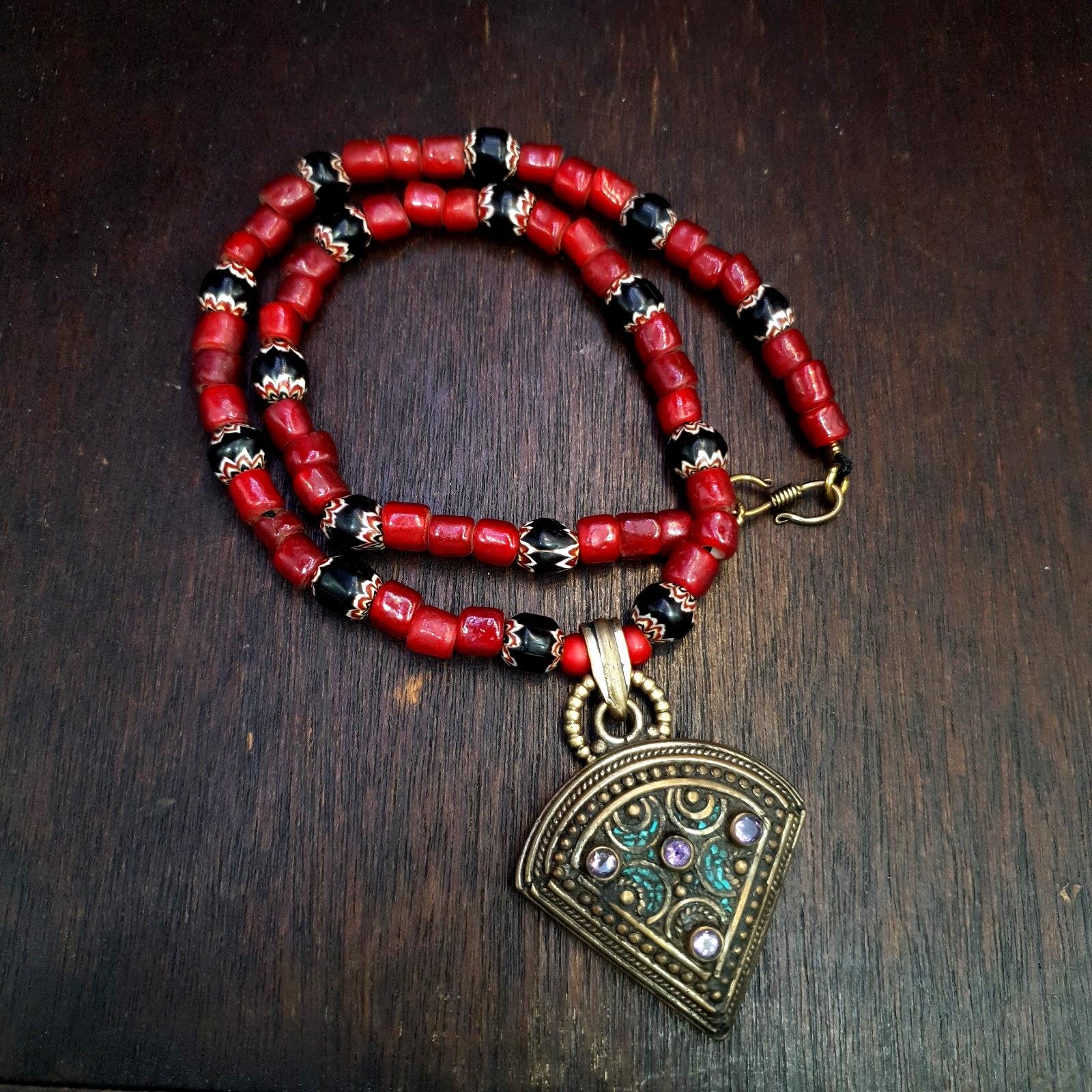 Venetian Whiteheart Chevron Bead Necklace: Amethyst Turquoise Pendant