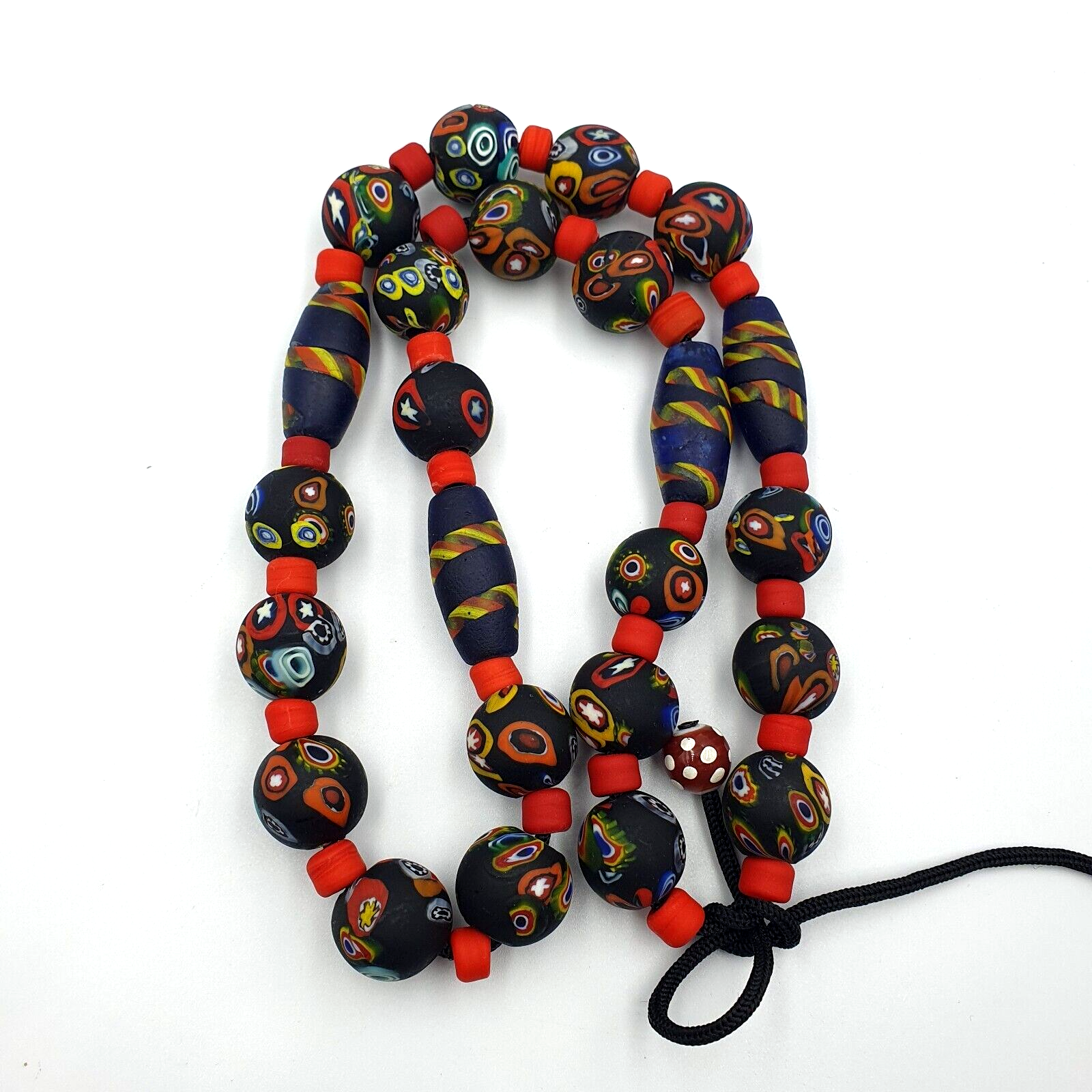Stunning Vintage Mix Roman Venetian Style Trade Old African Multicolor Glass Beads Necklace. Stunning Chevron six layer Glass...