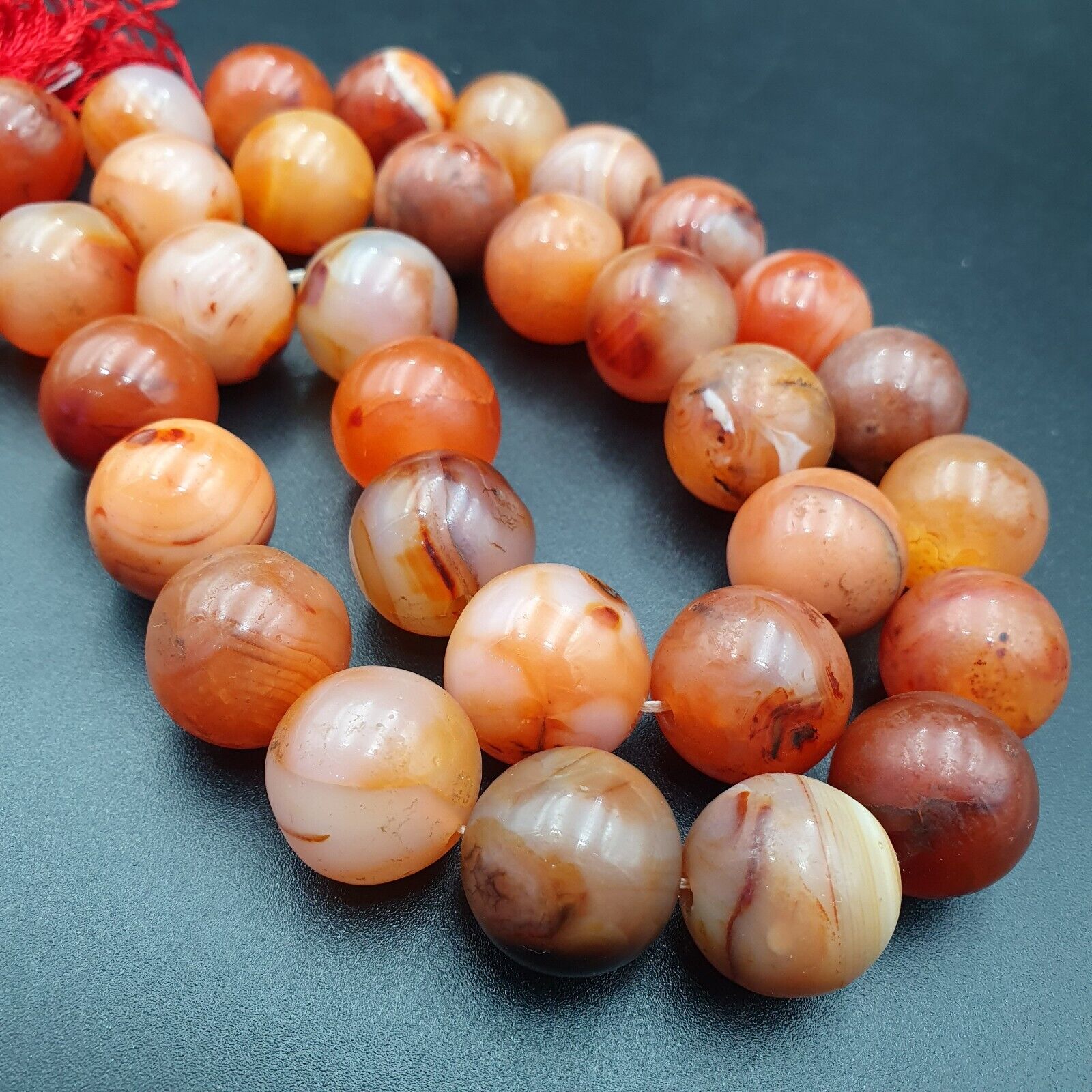 agate bead, Pink red color. This type of bead can be found in the Himalayan regions. round...