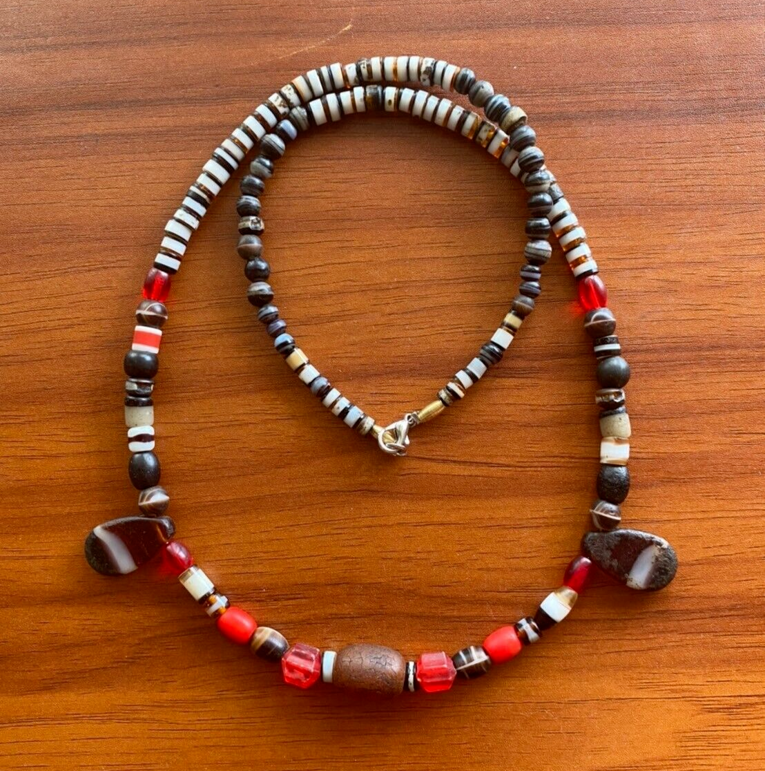 The Beautiful Necklace Ancient Old Dzi Banded Agate Amber and glass beads Antique Beads Necklace Mala Fast and...