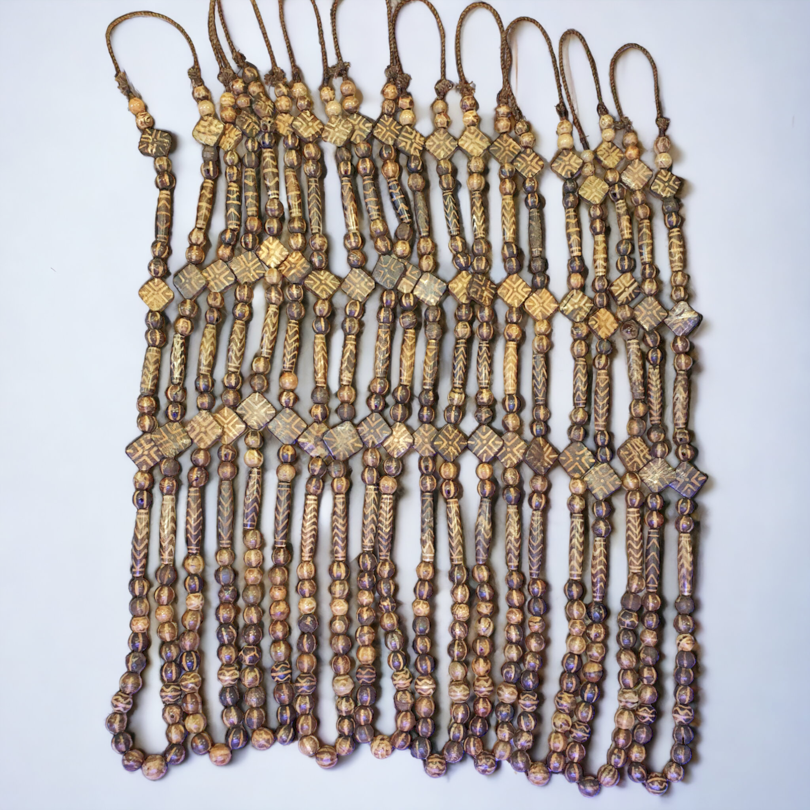 Asian Burmese Old Pumtek petrified Wood Stone beads Long necklace