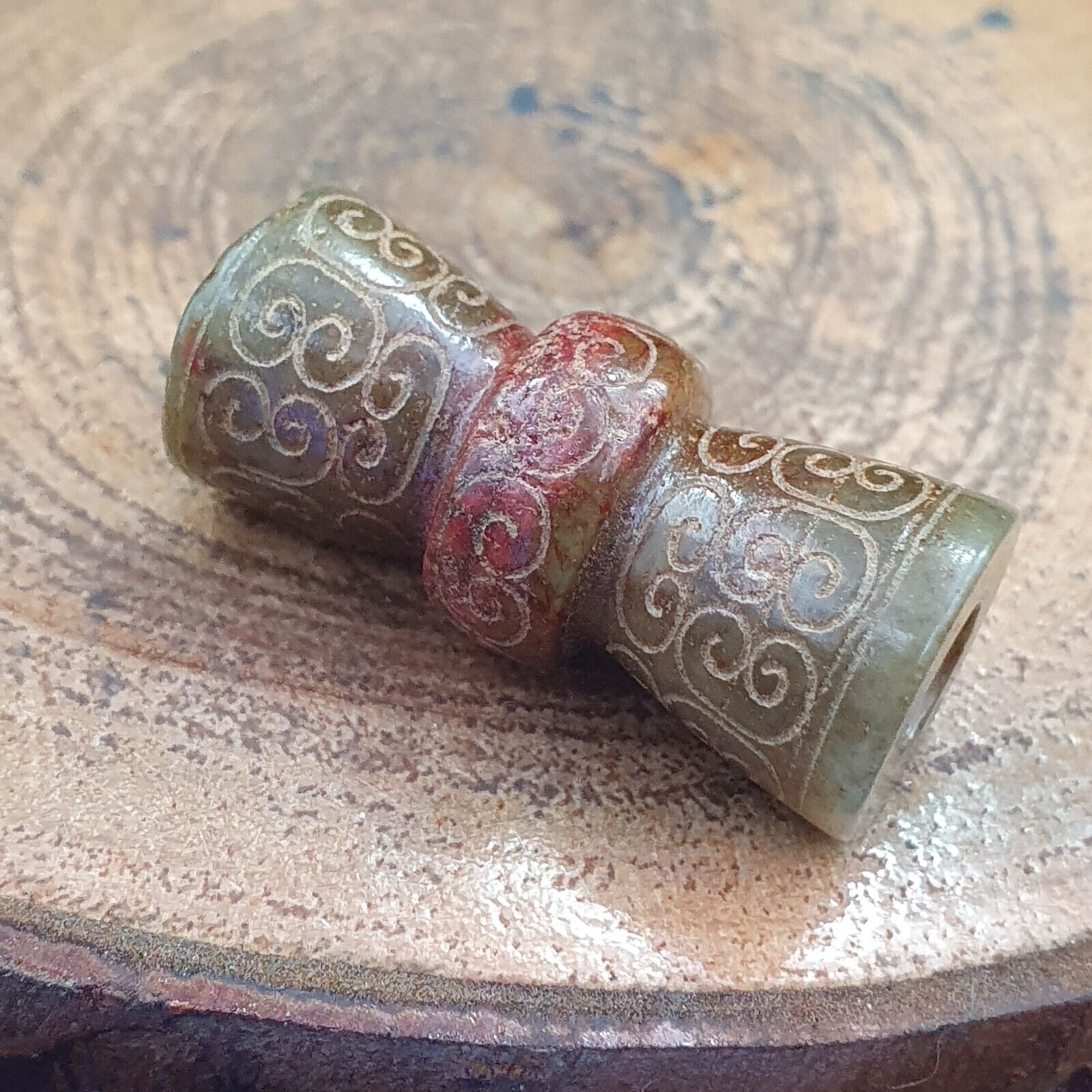 EARLY CHINESE YELLOW Green JADE BEAD PENDANT  Haitian TO WARRING STATES PERIOD certified with certificate Antique, with few nicks...