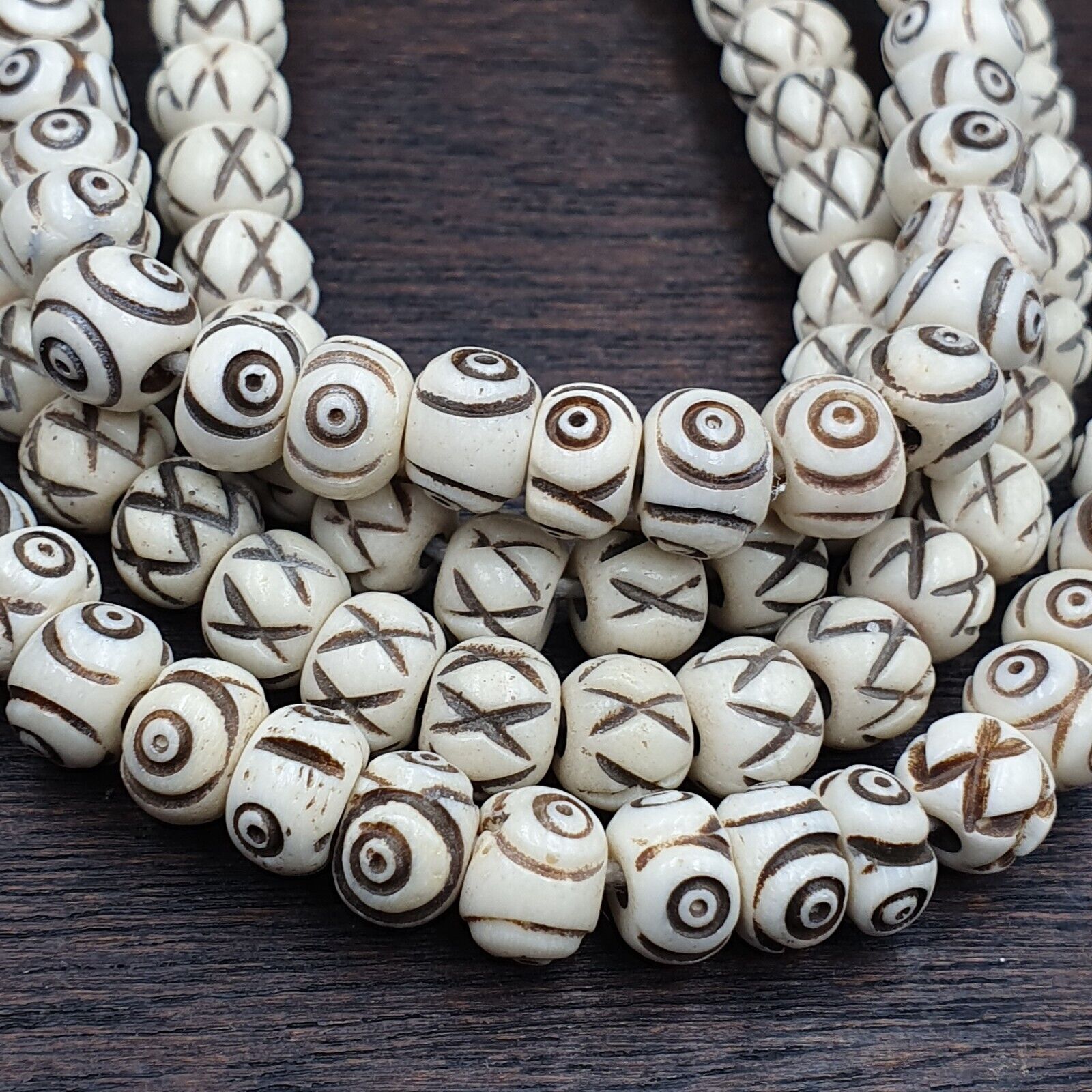 Old Tibetan Chinese Carved Necklace Tribal Bone Beads Beaded Strands 2 Strands  We try our best to...