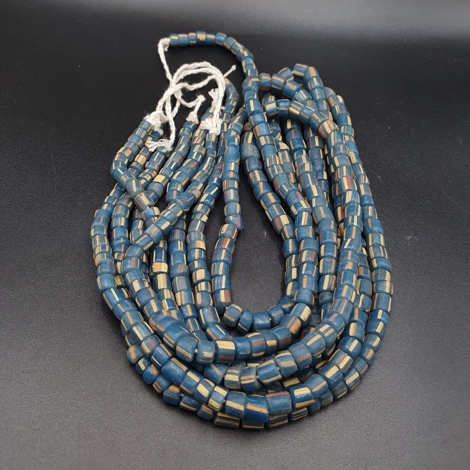 Vintage OLD AFRICAN White Stripes GLASS ANTIQUE BEADS 11-12MM 100+ beads Strand