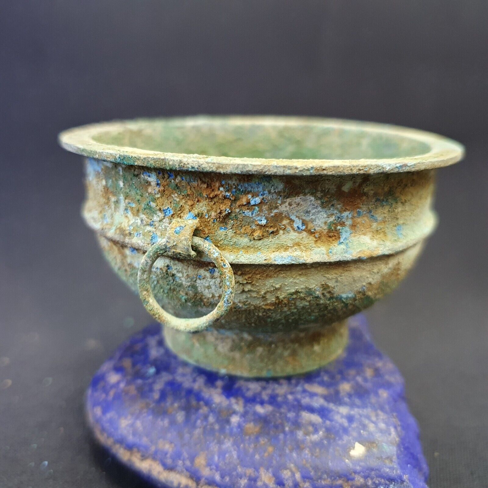 Ancient Antique Bronze Medicine Bowl with Handles Green Rusted Patina
