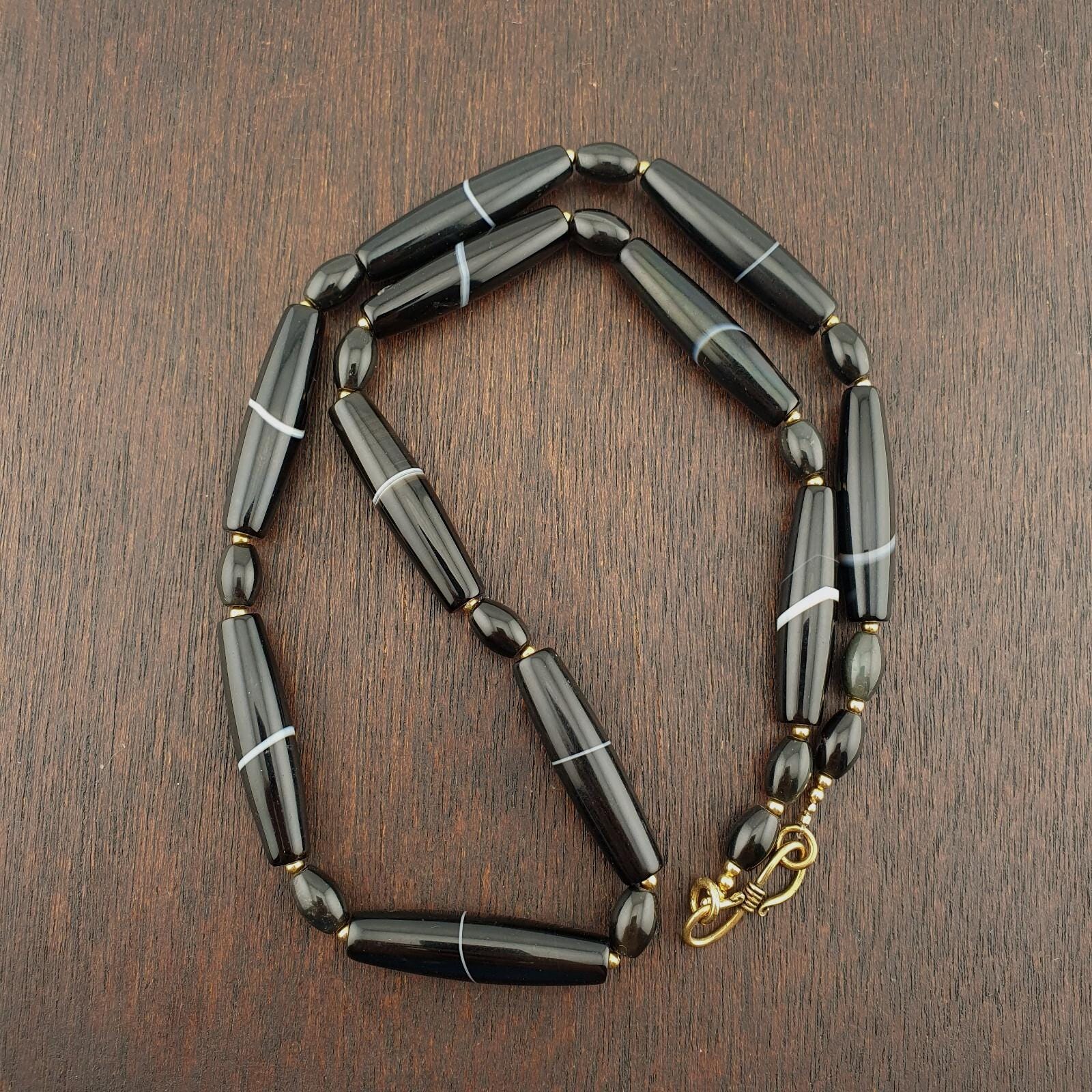 This product is a unique set of 11 antique Yemeni agate beads, each featuring a rare and...