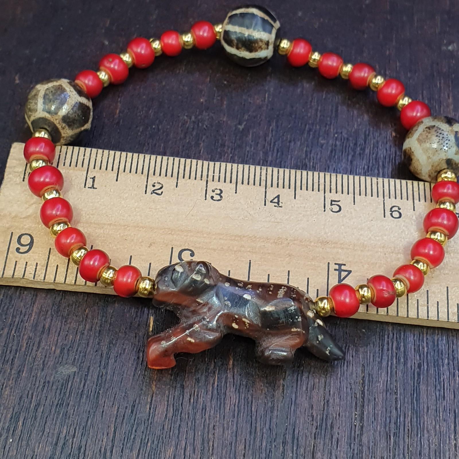 Antique tibetan agate animal figurine ventian whteheart pumtek beaded bracelet