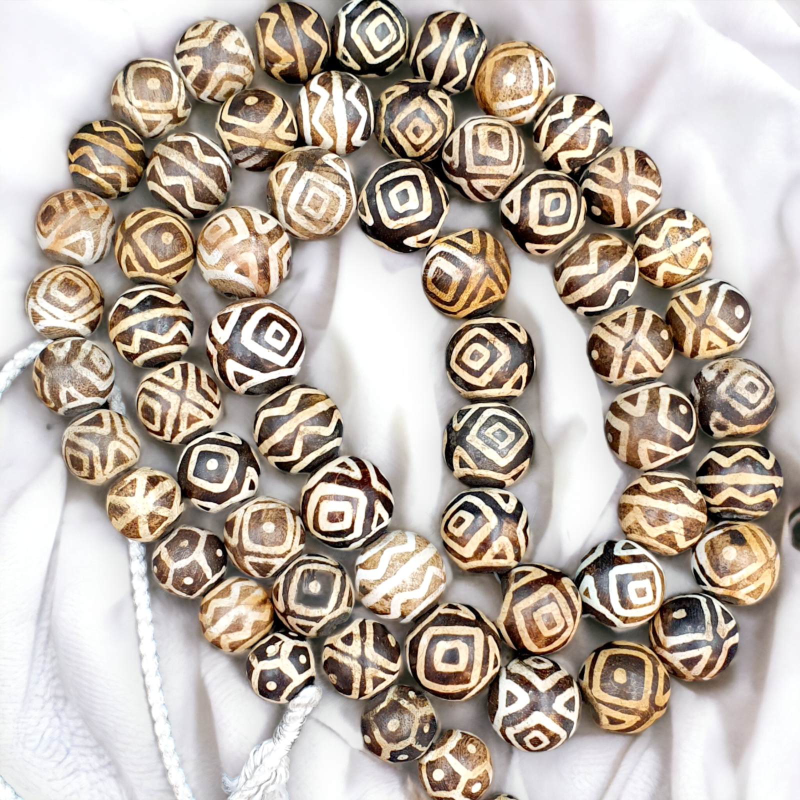 Asian Burmese Old Pumtek petrified Wood Stone beads Long necklace rare pattern  Pumtek Bead of Myanmar (Burma) ...
