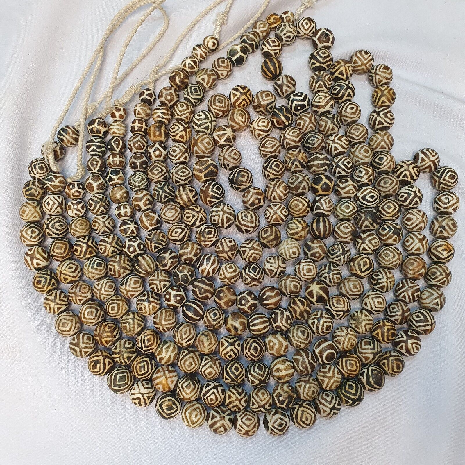Asian Burmese Old Pumtek petrified Wood Stone beads Long necklace Unique pattern