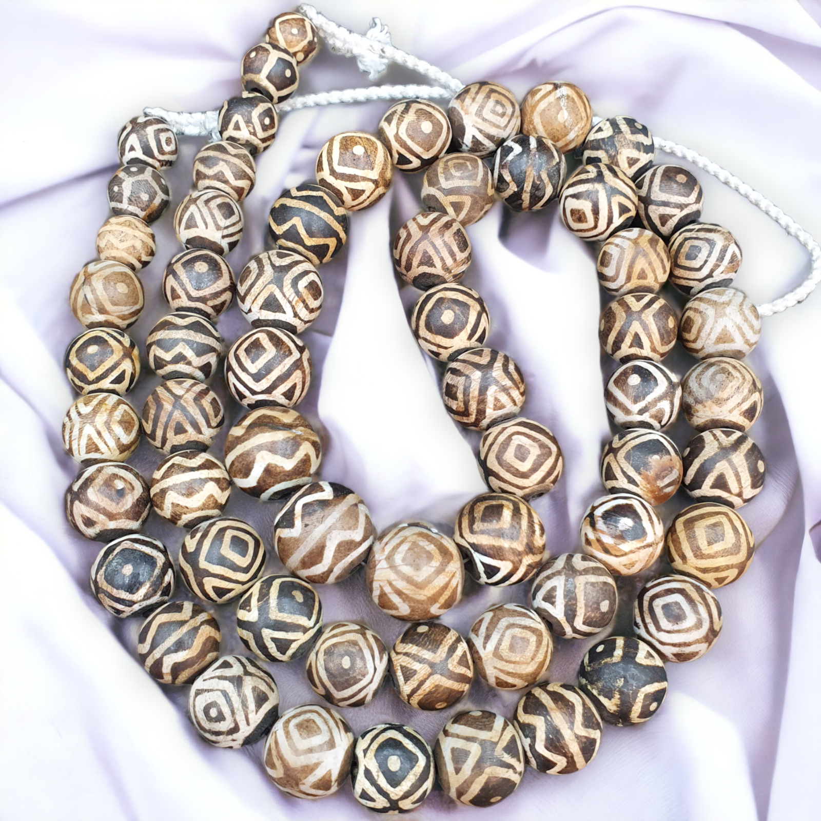 Asian Burmese Old Pumtek petrified Wood Stone beads Long necklace Unique pattern