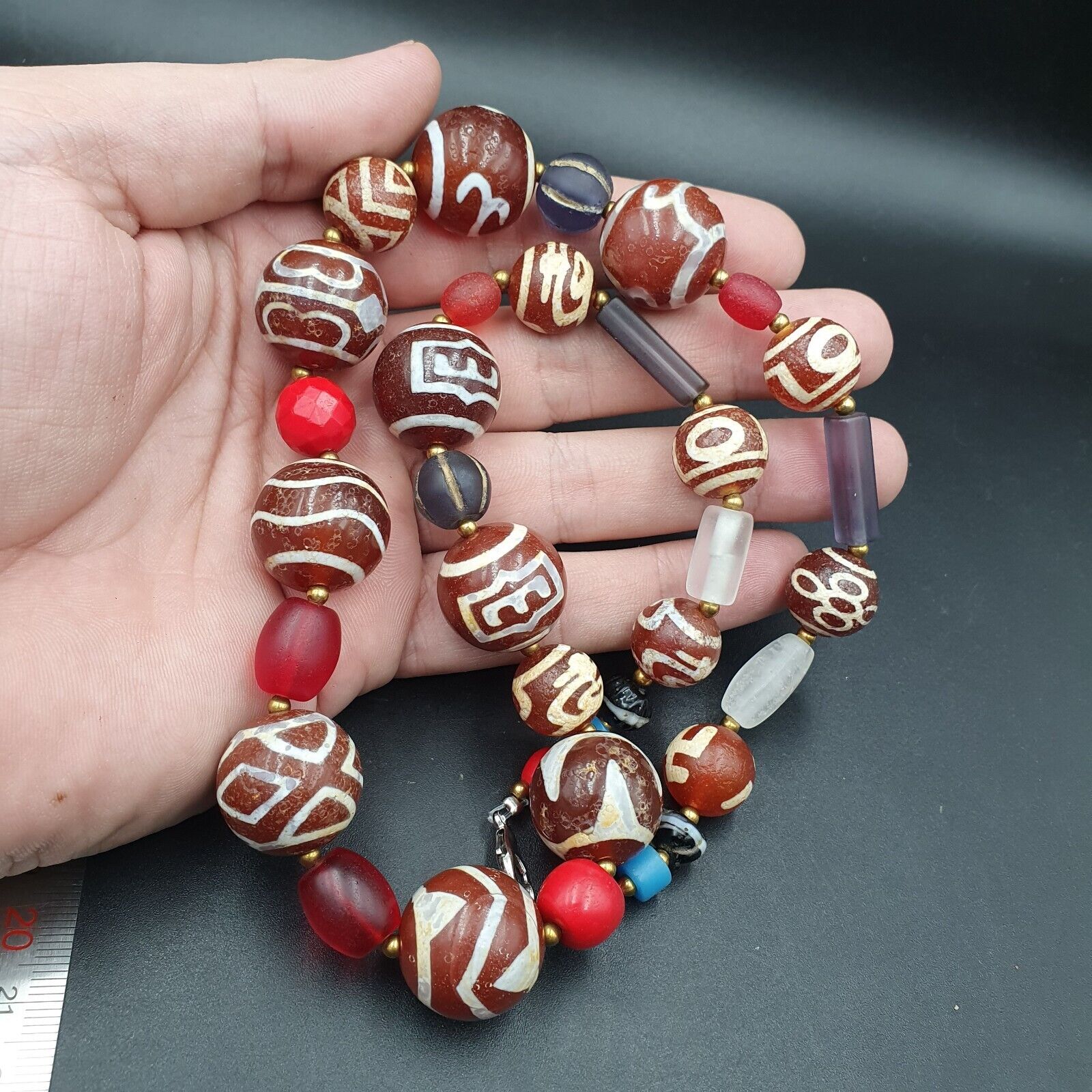 Vintage Old Himalayan Indo Tibetan Etched Agate Beads Etched Decorated Agate Carnelian Beads Necklace. We try our best...