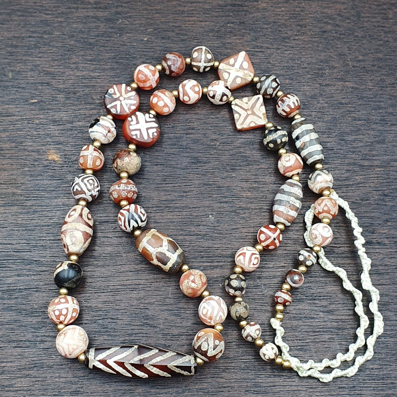 Antique HIMALAYAN Indo Tibetan Central Asian Etched Agate beads Necklace 7ED-A-