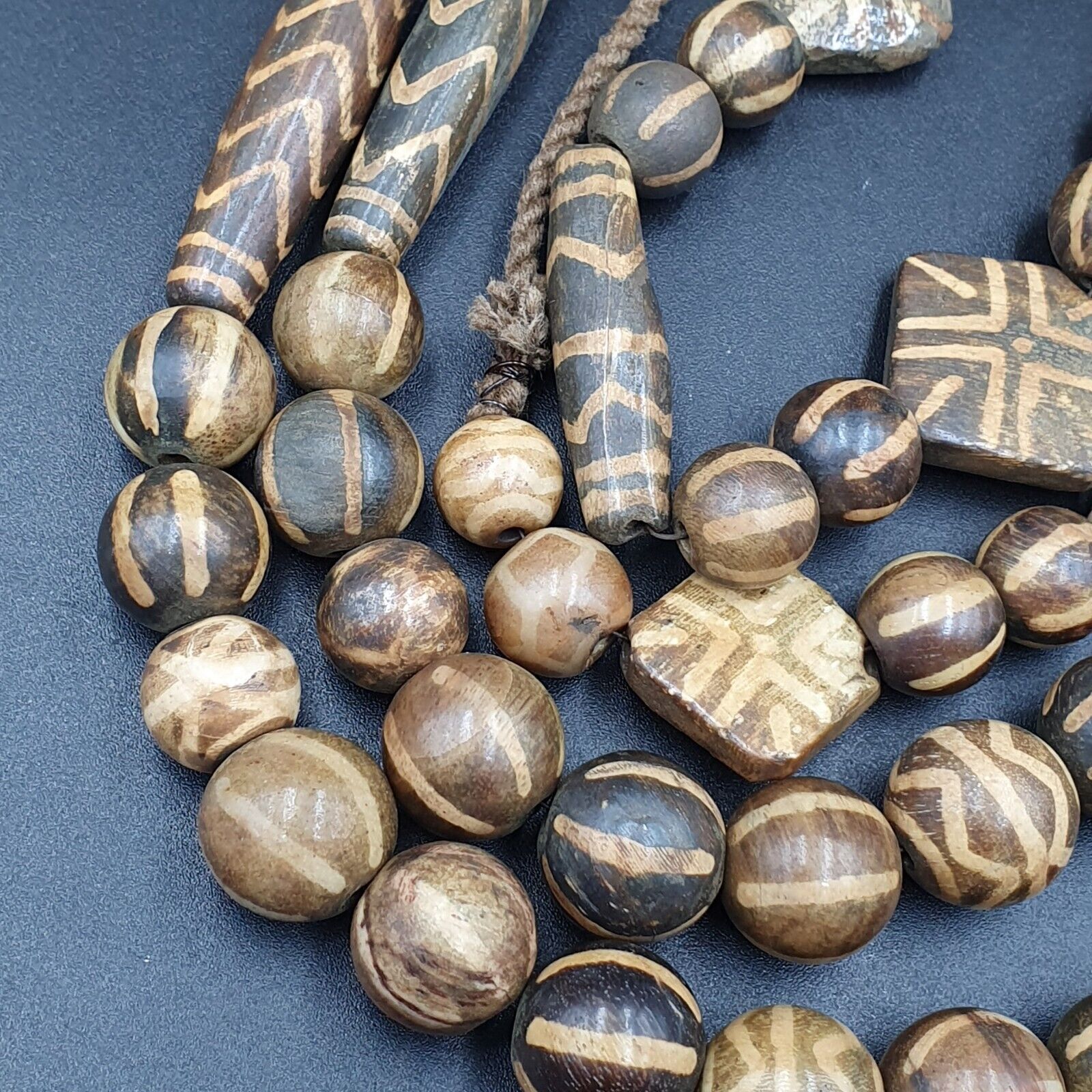 South Asian Burma Old Pumtek pyu beads petrified Wood Stone beads Necklace PK-o2