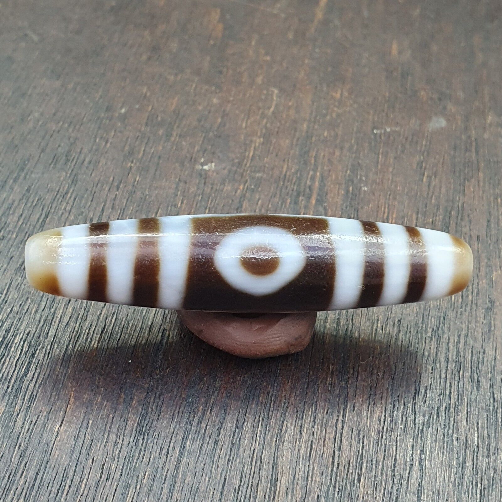 Symbolism: Dzi beads come in different patterns and designs, each with its own symbolic meaning. These patterns can include "eye" motifs, waves, stripes, and more. The "eye" pattern, for example, is thought to symbolize the watchful eye of a god, providing protection and warding off negativity.