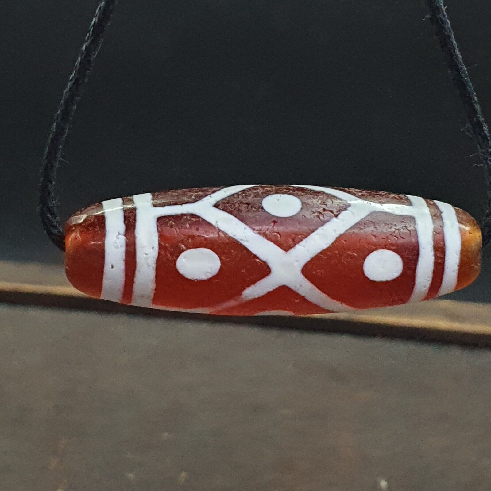 INDO Tibetan Himalaya Agate stone Bead Amulet Old BeadsAntique Tibetan Nepalese RED Etched Agate Bead Decorated Carnelian...