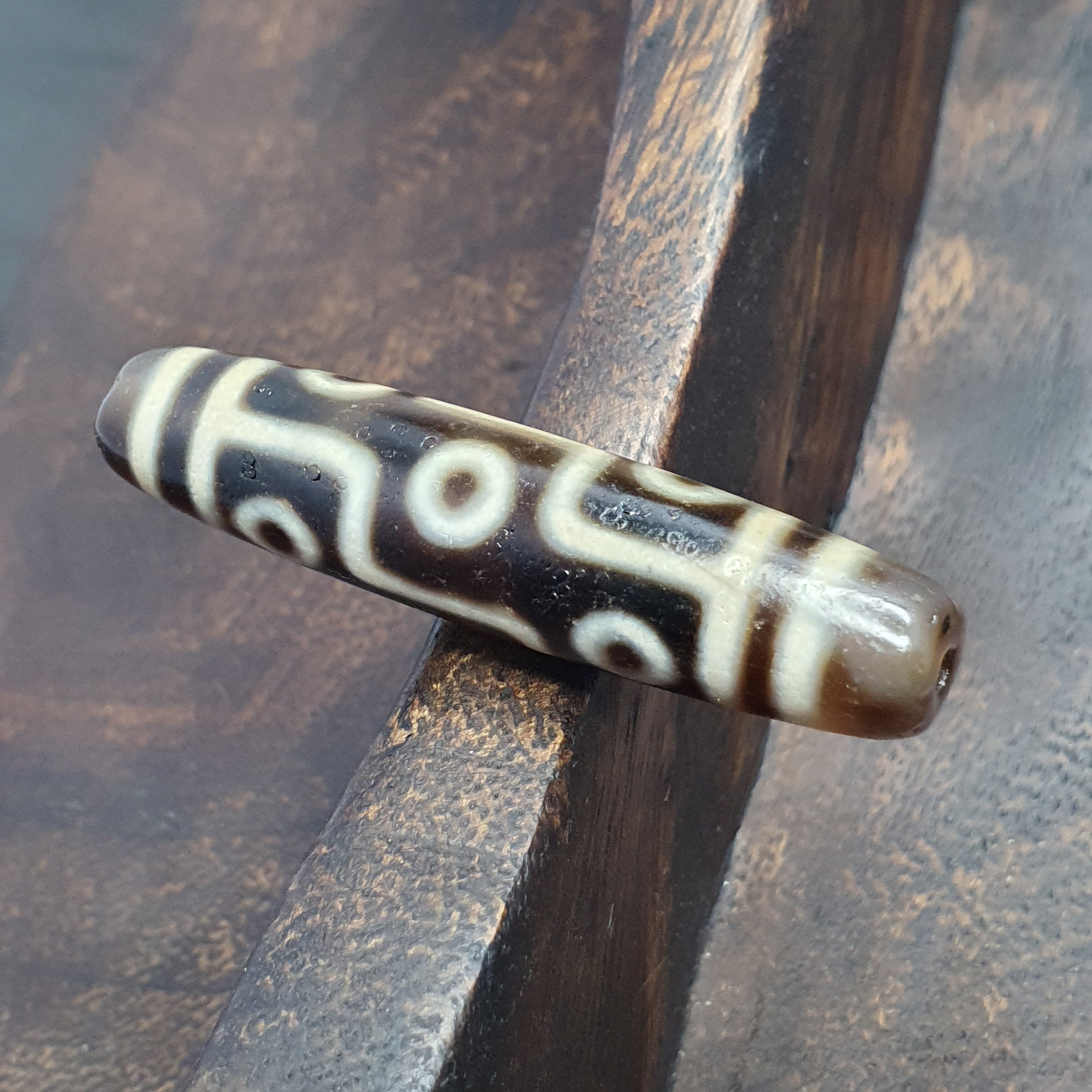 Authentic vintage Tibetan 9 Eyes Agate Dzi bead amulet is a powerful symbol of protection, prosperity, and spiritual healing. Crafted from natural agate, the 9 Eyes design represents the nine attributes of a compassionate and enlightened being. Revered in Tibetan culture for centuries, Dzi beads are believed to bring good luck, ward off negative energies, and enhance spiritual growth. Whether worn as a pendant, added to a collection, or used in meditation, this unique piece is a meaningful treasure that carries deep cultural significance.