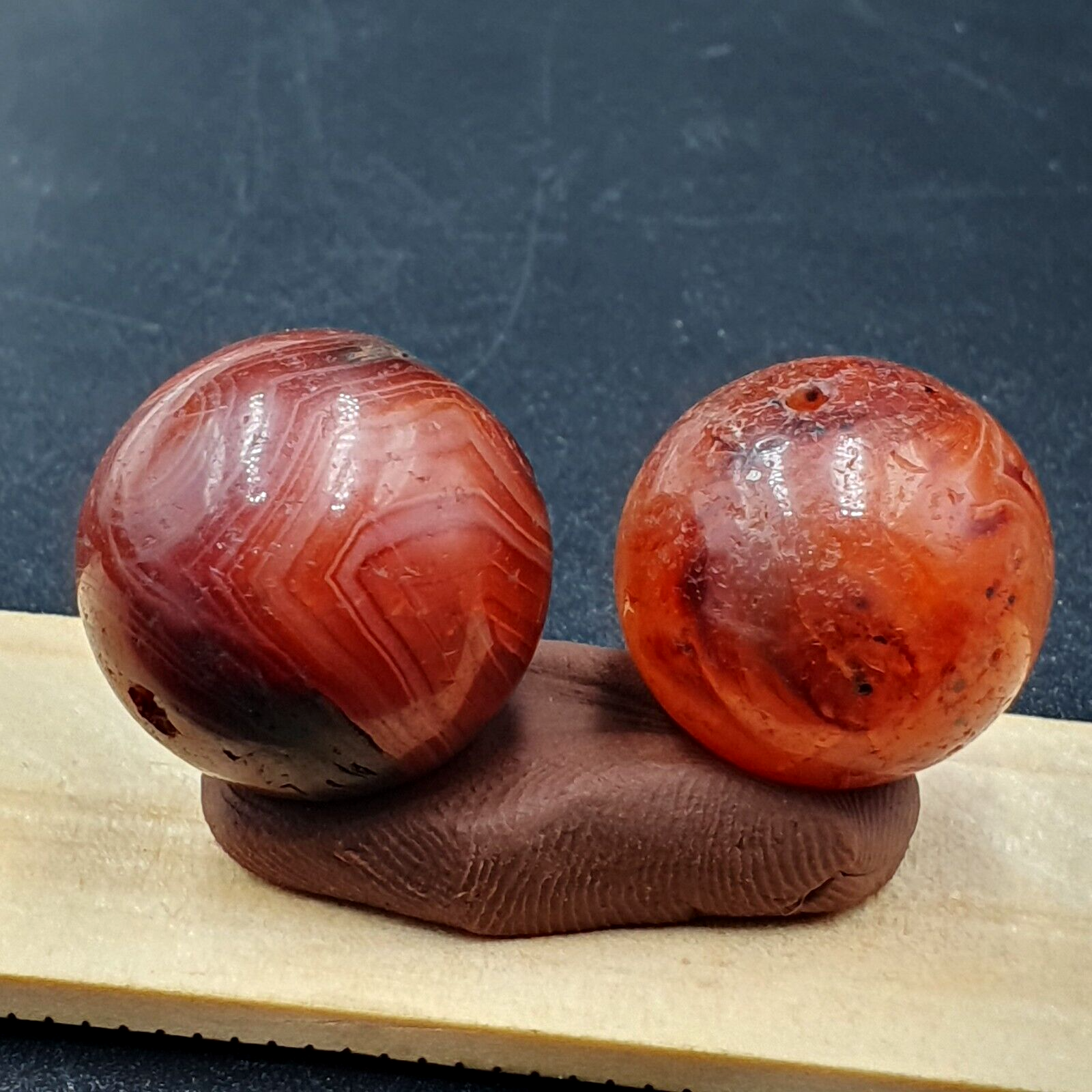 2 Old Ancient Indo Tibetan Carnelian Agate Beads lot 2 Beads