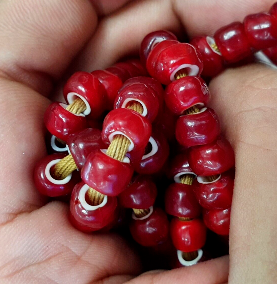 White Heart Bead Necklace. old Venetian red white heart beads These glass seed beads measure 7-8 MM. which are much larger than the more common ones. . They were made at the turn of the 20th century in Italy as trade beads for Africa. The color is superb and they feel wonderful. Vintage African Trade Beads. They make a beautiful and unusual necklace.