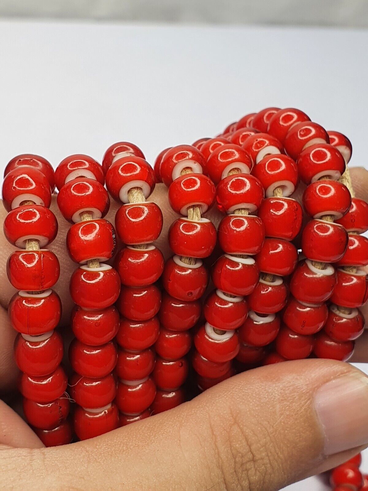 White Heart Bead Necklace. old Venetian red white heart beads These glass seed beads measure 8 MM....