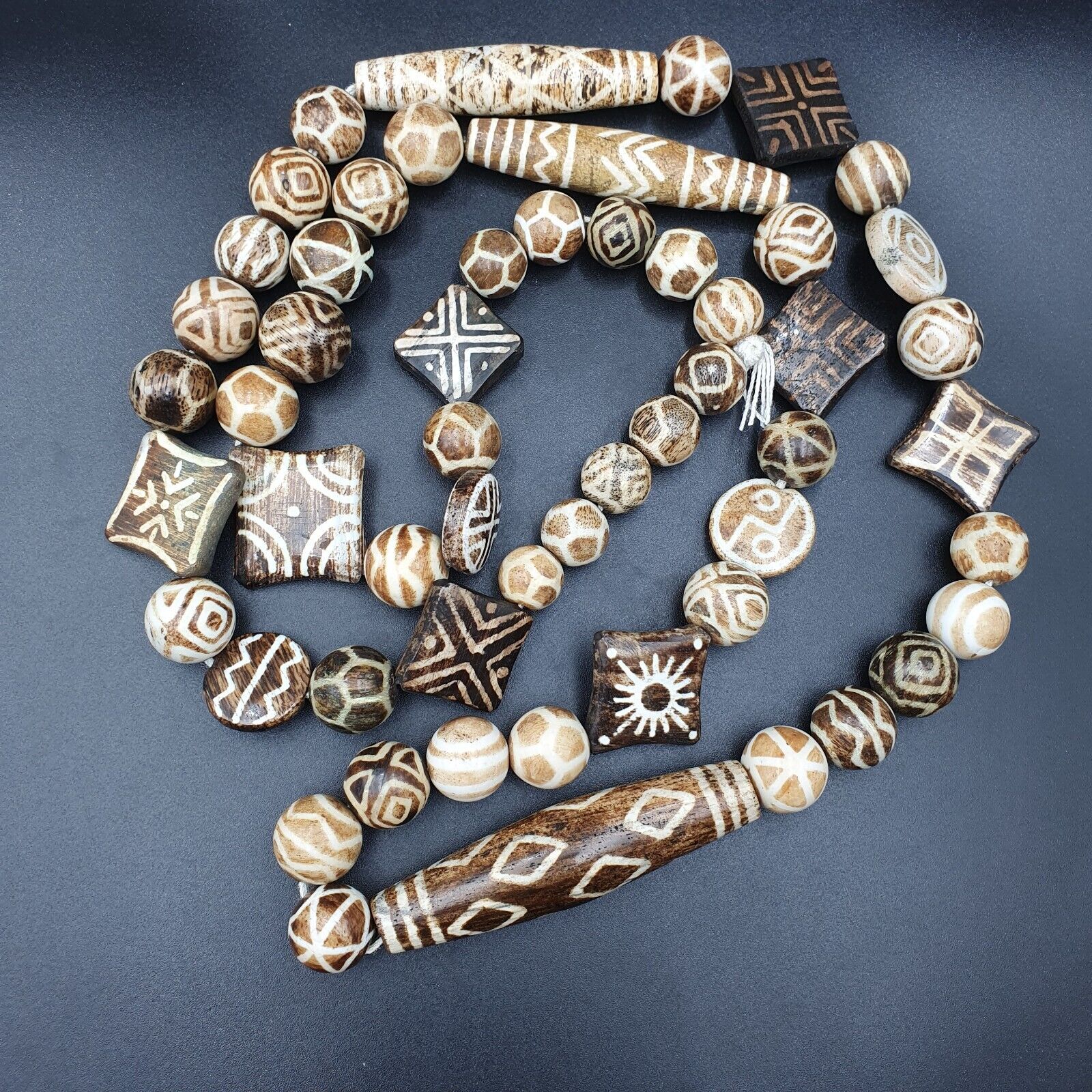 Amazing Asian Burmese Old Pumtek pyu petrified Wood Stone beads Long Strand