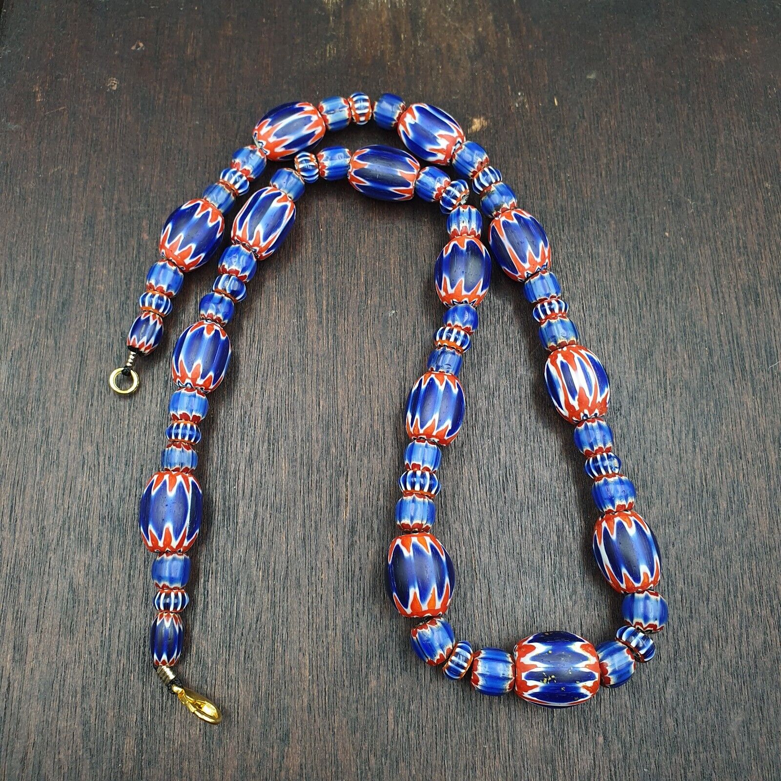Antique Venetian inspired African Blue Glass Chevron Beads Necklace