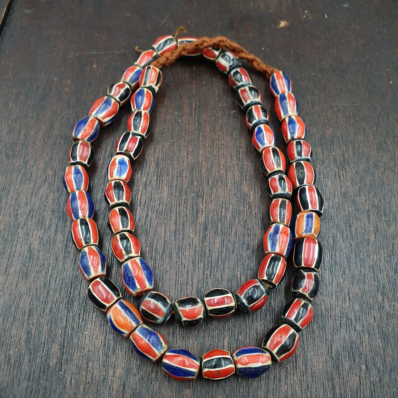 Antique Venetian Style Chevron Trade Beads Necklace. The color is superb and they feel wonderful. Vintage African Trade Beads. They make a beautiful and unusual necklace.