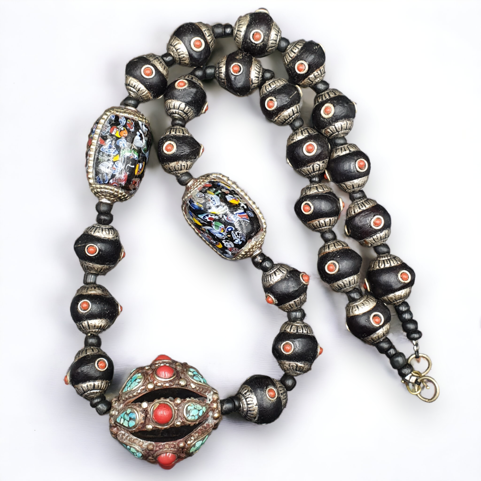Beautiful Old Tibetan Silver Nepalese Coral & Turquoise Antique Jewelry Necklace