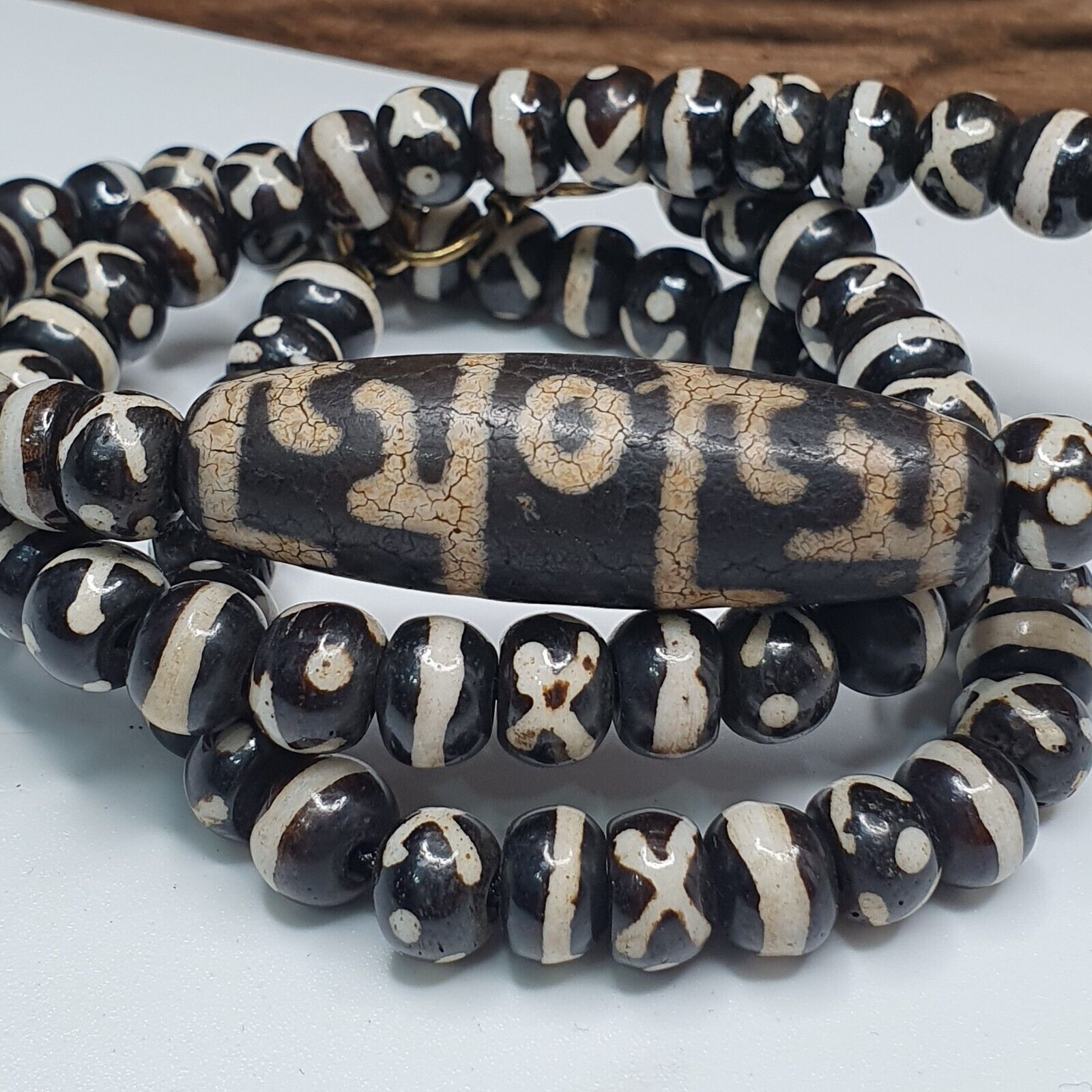 Indo Tibetan Himalayan Agate Bead unique Patterns Dzi Amulet Necklace