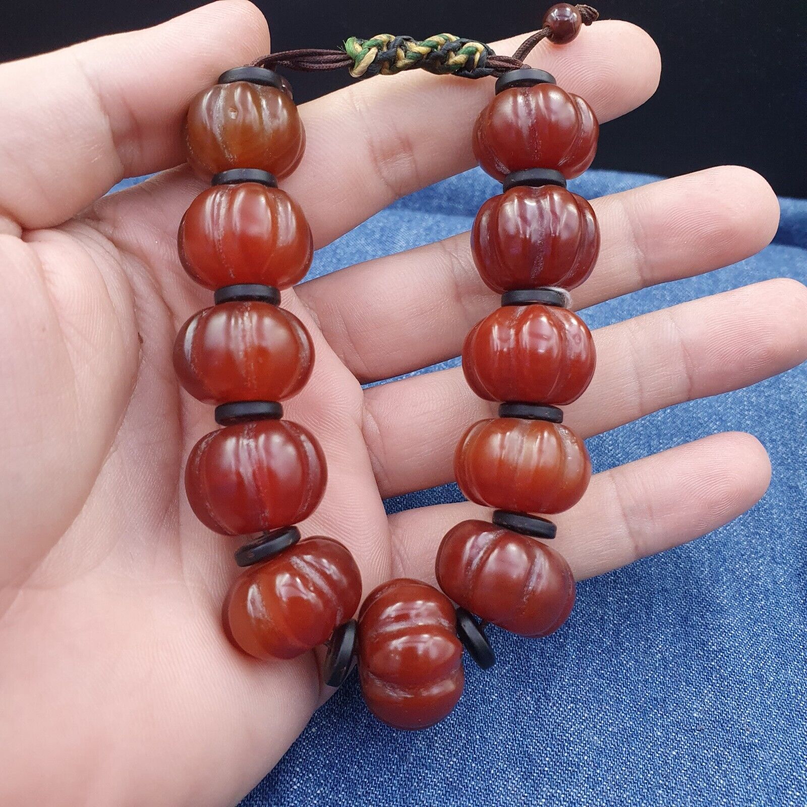 Lot 11 Antique Himalayan Tibetan Carnelian Carved Agate Beads Melon Shape Beads