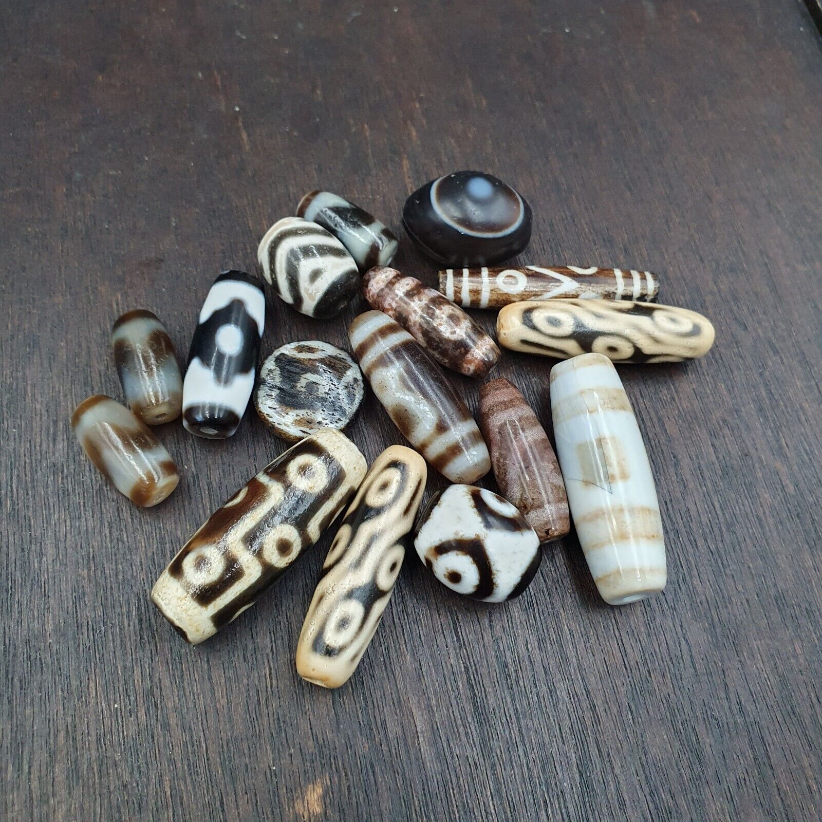Vintage OLD Himalayan Indo Tibetan rare EYE Patterns eyes Dzi Amulet Beads