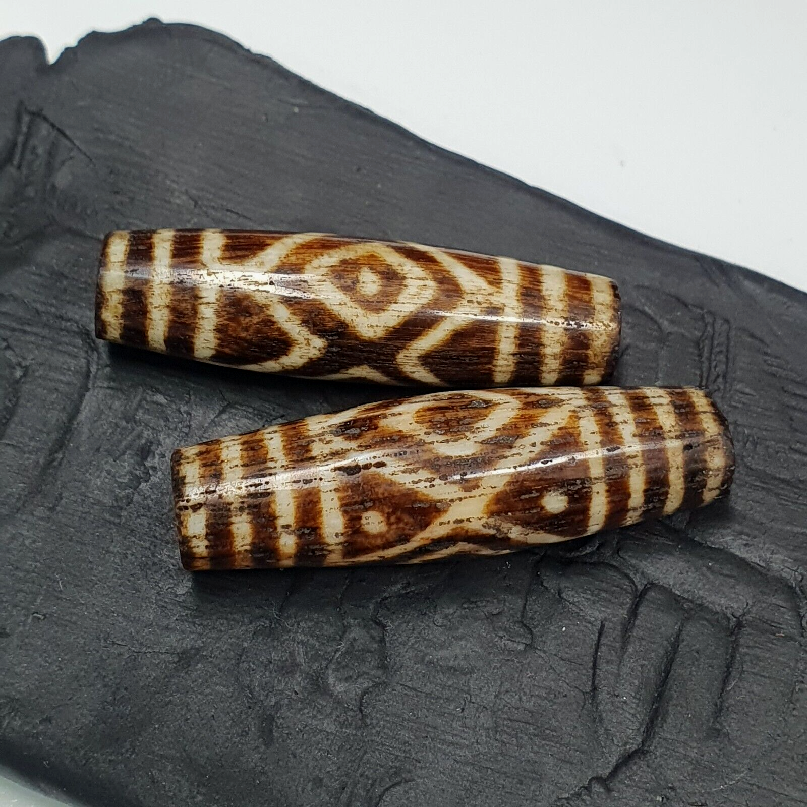 Lot 2 Antique PUMTEK PYU BEAD Rare patterns with SILKY PATINA PBD-4