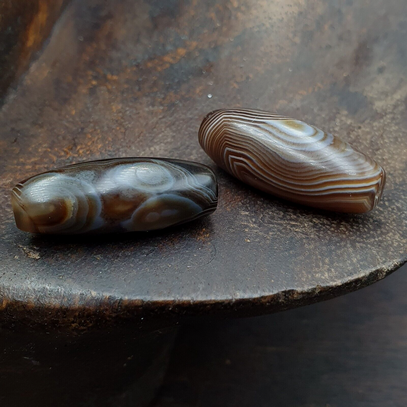 Lot 2 Himalayan Eye Agate Black Agate Beads Soleimani Agate Beads