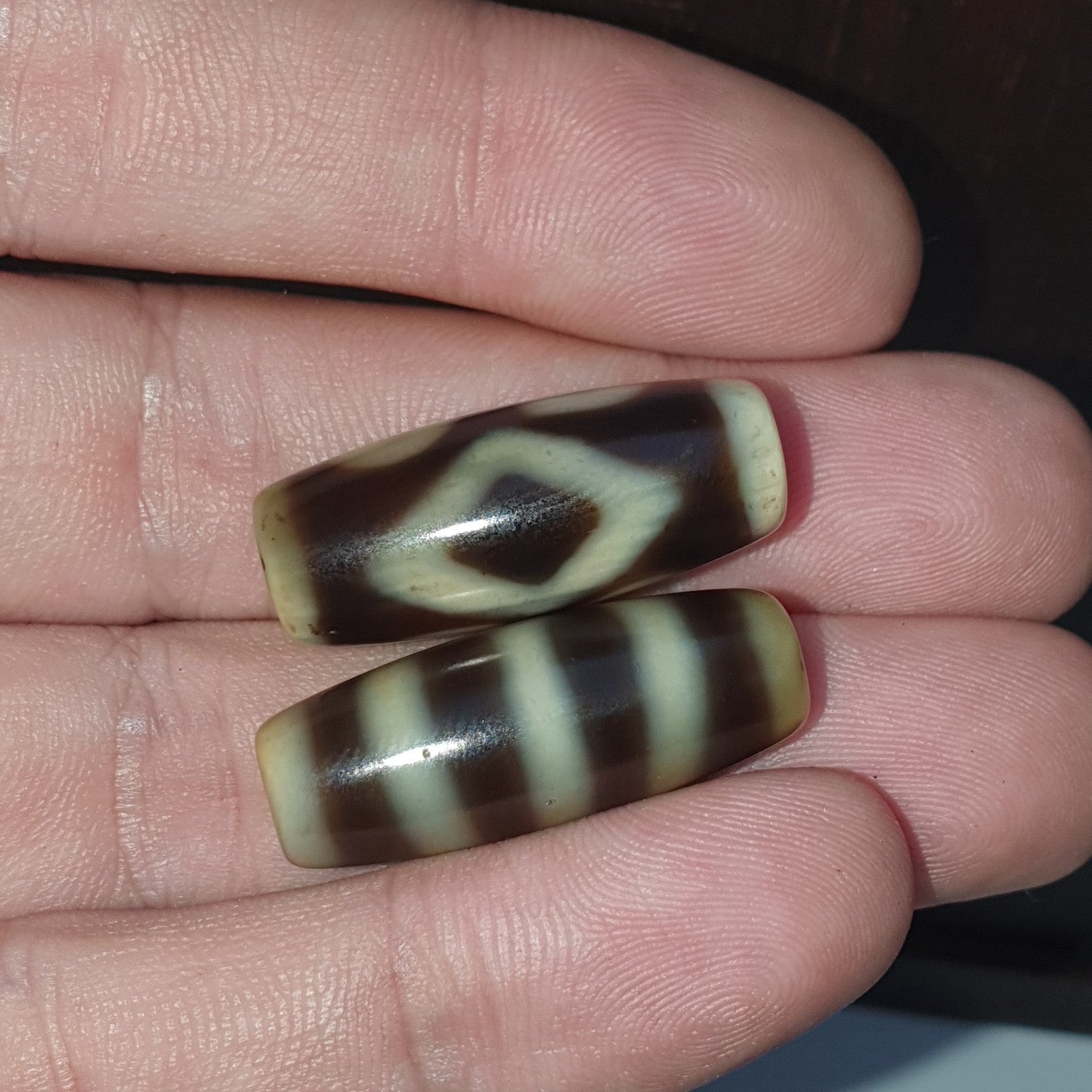 Lot 2 Tibetan dzi bead old amulet Agate Vintage Tibet pendant Necklace