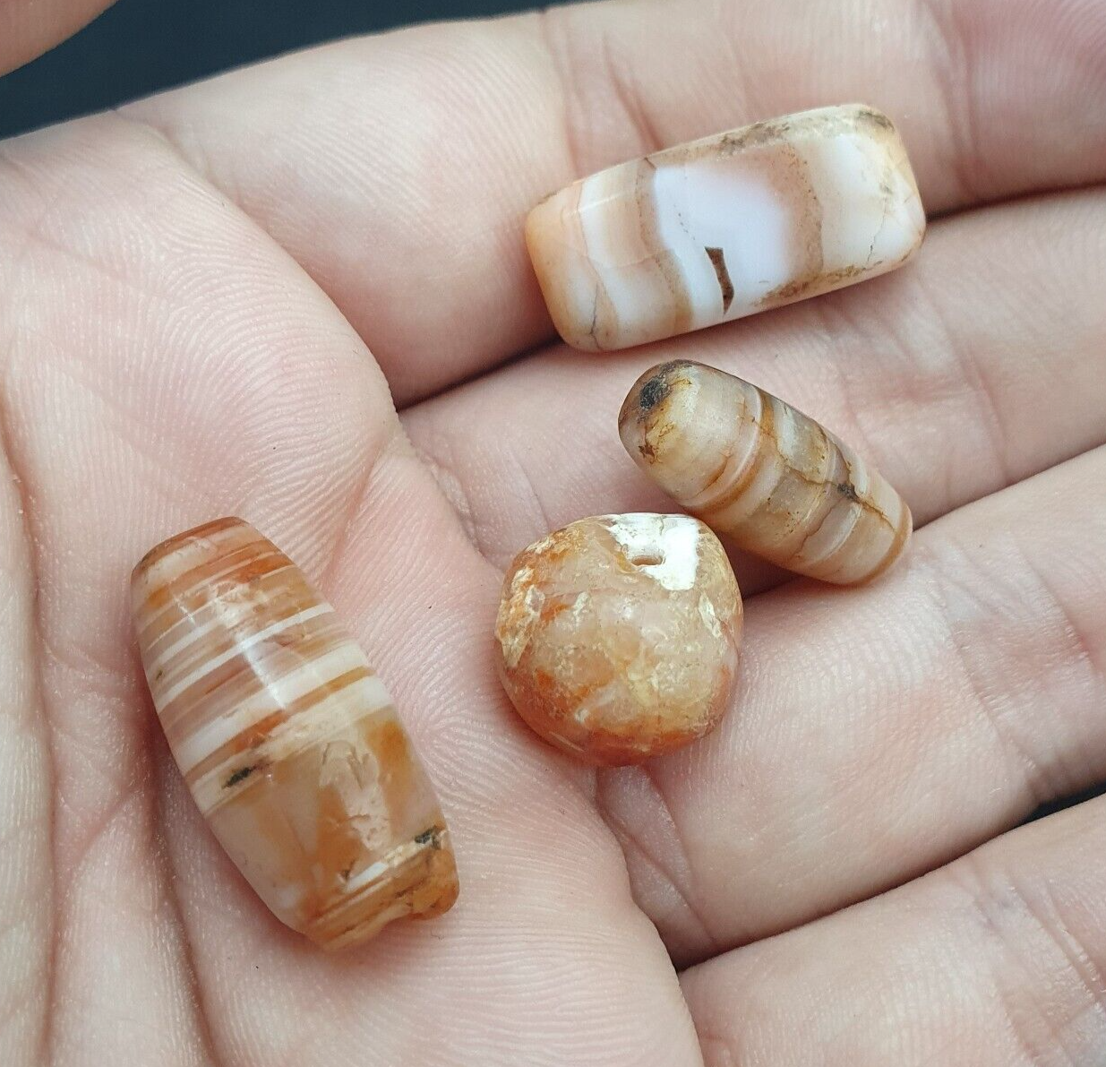 Lot 4 Beads Old Antique Himalayan Indo Tibetan Agate rare Patterns pure Eye Soleimani Amulet Bead Pendant Beads.