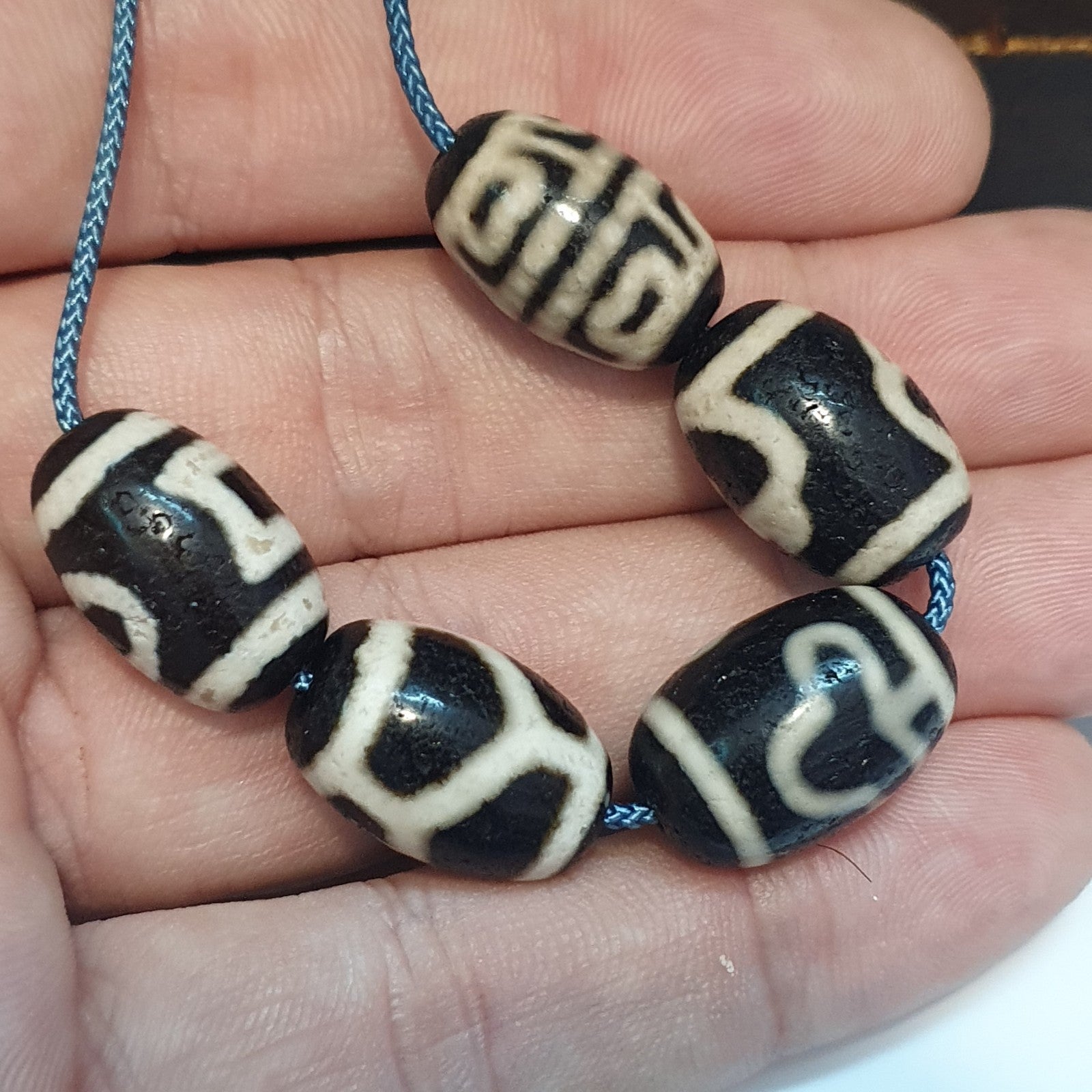 Lot 5 Tibetan dzi bead old amulet Agate Vintage Tibet pendant Necklace