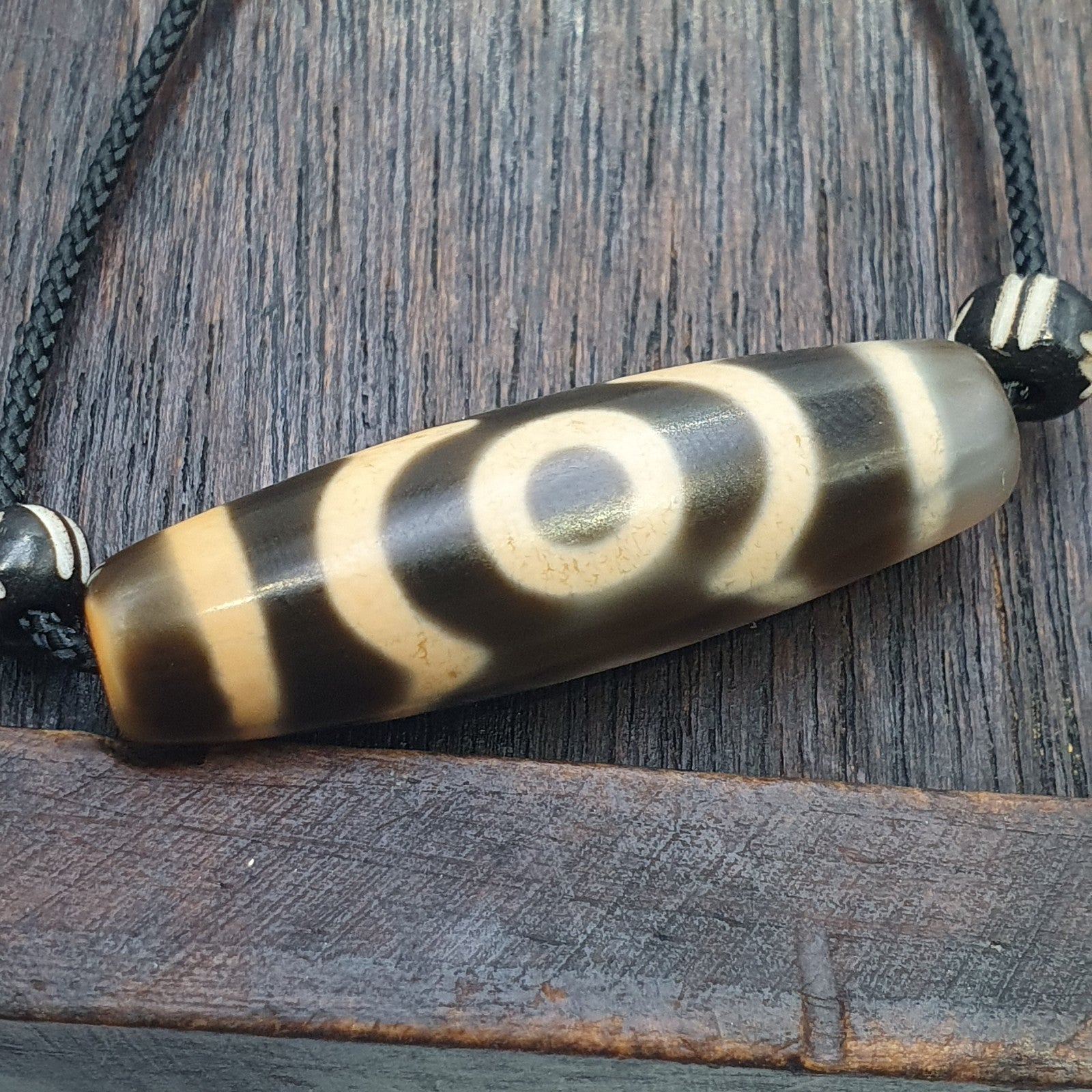 Tibetan tradition agate dzi beads with 3 eyes and waves motifs spiritual mala