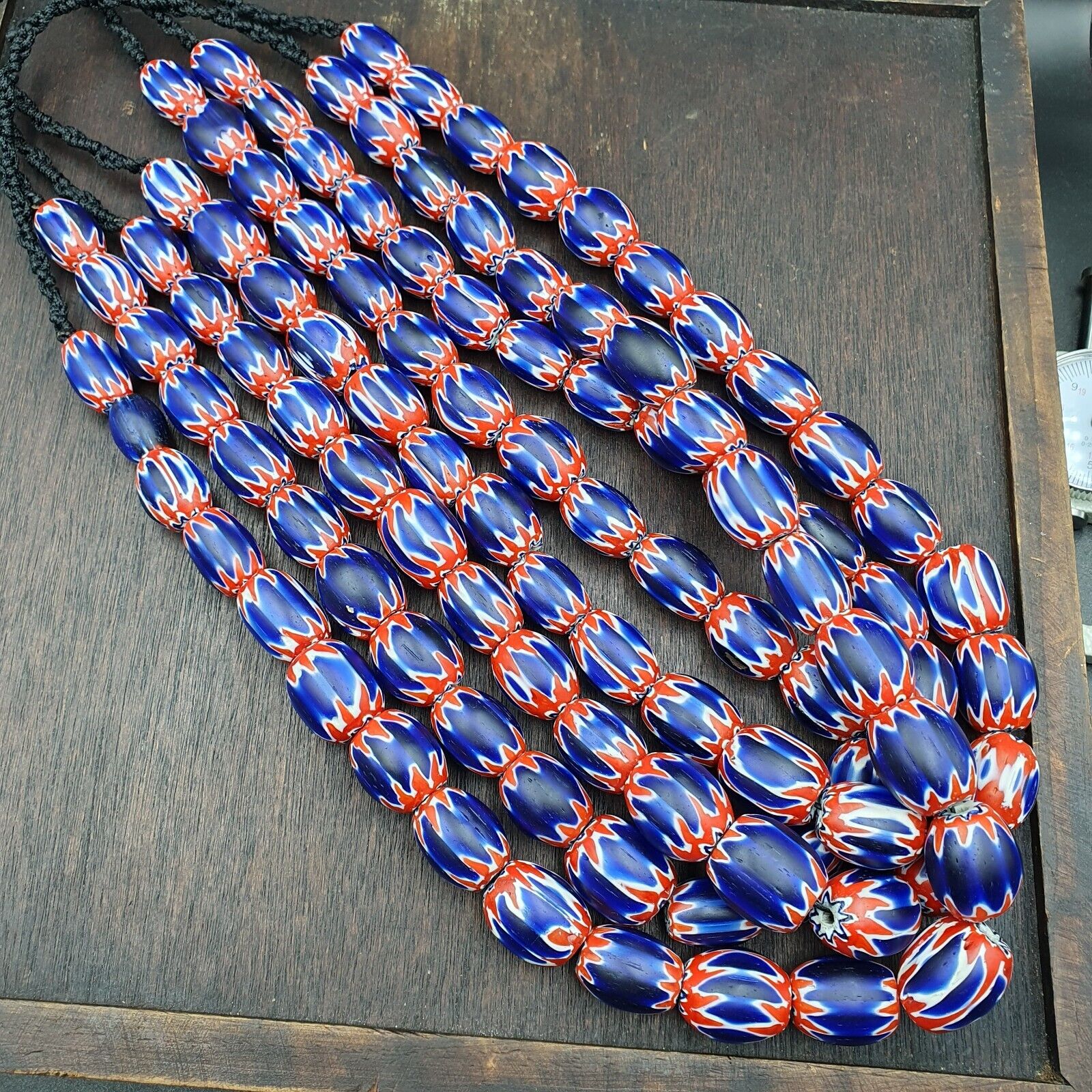 Venetian Antique Style African Blue Glass Chevron With Big Beads 14-18mm