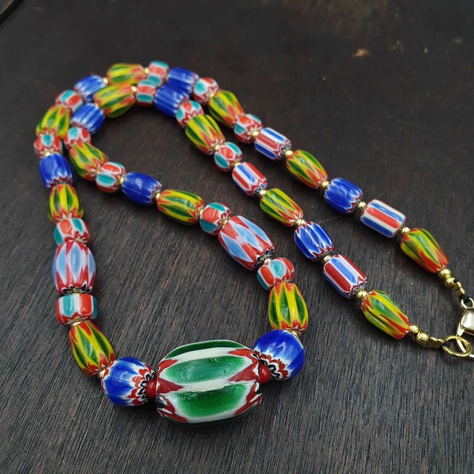 Venetian Style Chevron and White Heart Venetian Beads Glass Beads Necklace Vintage Venetian style Chevron Beads are...