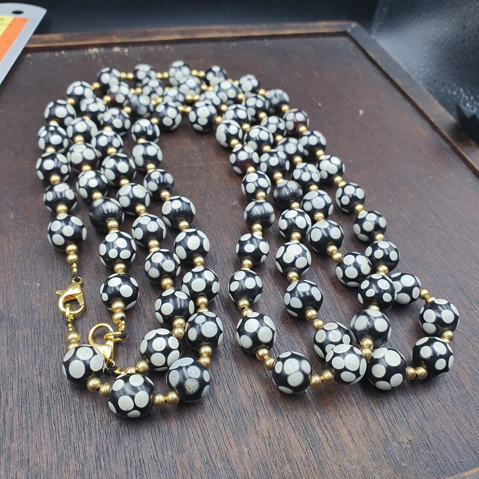 Venetian Style Skunk black beads Vintage dotted Beads Strand