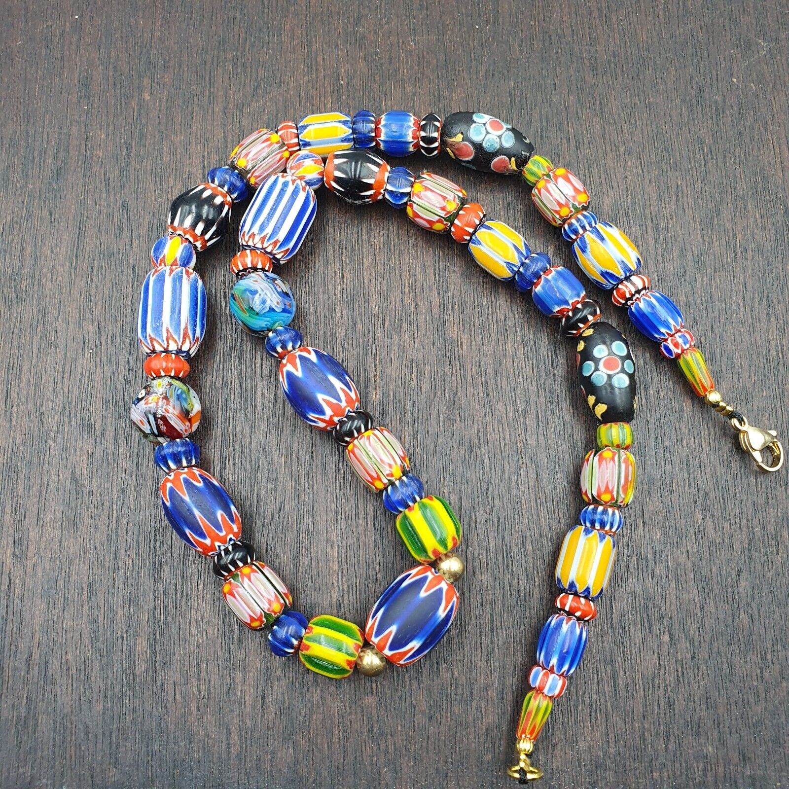 Stunning Vintage Venetian Style Trade Vintage Multicolor Glass Chevron Beads Necklace