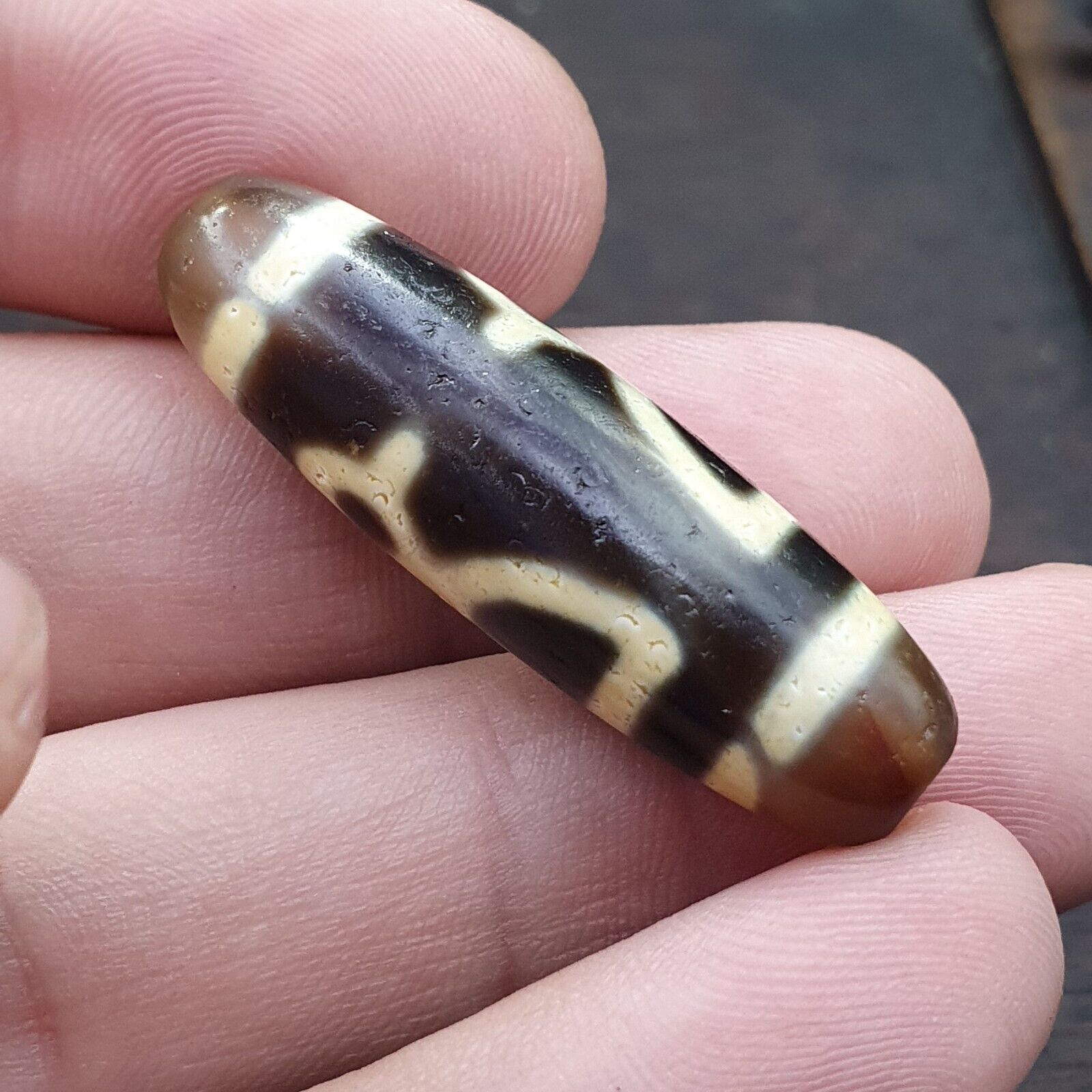Old Indo Tibetan Agate Eye lines Agate stone Dzi Bead AmuletPacify Negativities, Bring Good Luck Growth, StrengtheningSubjugate Inner/Outer...
