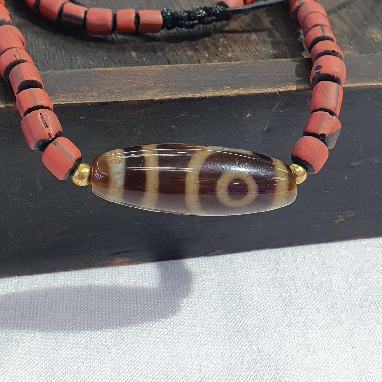 Vintage agate 2 eyes bead tibet himalayan dzi pendant necklace