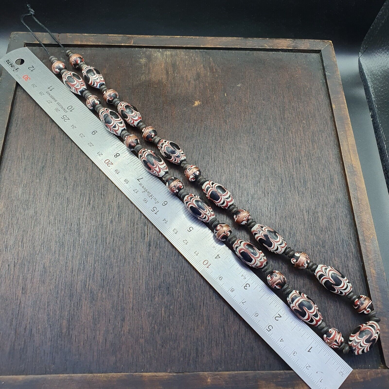 VINTAGE BEAUTIFUL Venerano ART Fancy 25×13MM Aventurine GLASS BEADS Strand